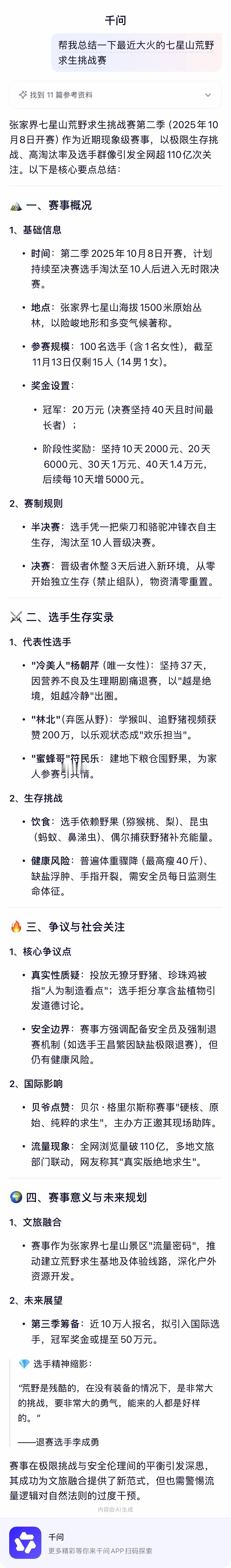 上周查专升本院校和学费的时候,突然想试试阿里新出的 APP。平时要翻好几份文件或者去几个网站,没想到千问几秒钟就帮我整合出来了,还按逻辑分点,甚至用图表展示,看一眼就能明白。它除了在校园生活信息查询上很方便,我问千问一些社会议题也能给到既有深度又有广度的回答。查了一下它背后的 Qwen3‑235B 模型推理能力很强,所以回答不仅全面,还有深度,还能引用可信的数据来源。相比其他AI,千问在信息结构化和可读性上真的方便很多,也许世界级AI就应该是这个样子。