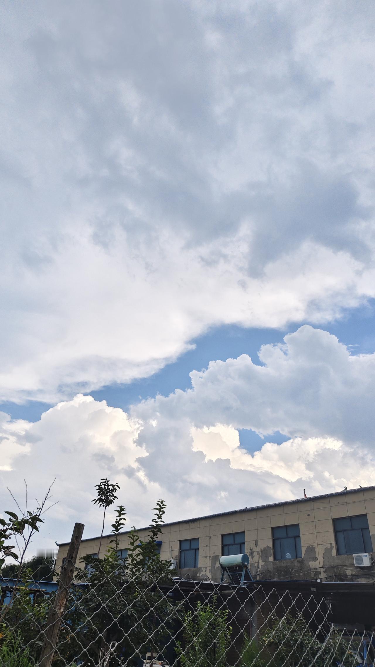 下午路过这片老楼,一抬头撞见挺好看的云。大块的白絮裹着点灰,像被揉皱的棉絮,漏出几缕清透的蓝。 楼是常见的米黄色外墙,墙皮掉了几块,窗户外挂着旧空调和太阳能水箱,顶子上还插着面小旗子。 铁丝网外的小树冒了新叶,枝桠斜斜伸着,跟云凑成了不怎么精致但挺顺眼的画面。 其实就是普通的日常,云随便飘,楼随便立着,风过的时候树叶晃两下,没什么特别的,就是看着挺踏实。