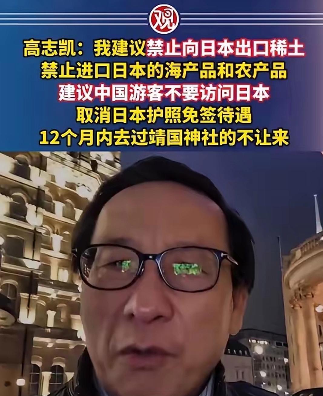 高志凯:我建议禁止向日本出口稀土,禁止进口日本的海产品和农产品,建议中国游客不要访问日本,取消日本护照免签待遇,12个月内去过靖国神社的不让来。 高志凯的这一系列建议,并非凭空提出,而是与当前中日关系中的诸多现实问题紧密相关。作为长期关注国际政治与中日关系的学者,他始终站在维护国家利益与民族情感的立场,其观点背后折射出的是对日本近期一系列不当行为的强烈回应。日本不顾国际社会反对,执意推进核污染水排海计划,对全球海洋环境和人类健康造成潜在威胁,这正是他提出禁止进口日本海产品和农产品的核心原因。 稀土作为战略性矿产资源,在电子、军工等高科技领域具有不可替代的作用,中国是全球稀土出口大国,而日本则是主要进口国之一。高志凯提出禁止向日本出口稀土,本质上是主张利用资源优势,对日本的不当行为形成制约,迫使日方正视国际社会的关切。取消日本护照免签待遇、限制去过靖国神社的人员入境,更是针对日本部分政客频繁参拜靖国神社、美化侵略历史的直接回应,这种行为严重伤害了包括中国在内的亚洲受害国人民的情感。 从历史维度来看,中日两国曾有过深刻的历史纠葛,日本军国主义的侵略行径给中国人民带来了沉重灾难。尽管战后两国实现了邦交正常化,但日本国内始终存在否认侵略历史、美化战争的势力,这成为影响中日关系健康发展的重要障碍。高志凯的建议,既包含对现实问题的应对,也蕴含着对历史教训的铭记,他希望通过这些措施,促使日本政府端正历史态度,尊重国际正义。 不过,也有观点认为,国际贸易与人员往来具有双向性,单方面采取限制措施可能会对两国的经济和民间交流造成影响。但在高志凯看来,维护国家利益和民族尊严是首要前提,当日本的行为损害到中国人民的根本利益时,采取必要的反制措施是正当且必要的。这种观点也引发了社会各界的广泛讨论,有人表示支持,认为这是对日本不当行为的有力回应;也有人呼吁保持理性,通过对话协商解决分歧。 无论争议如何,高志凯的建议都反映出中国民众对日本不当行为的不满,以及维护国家利益和历史正义的坚定决心。中日关系的健康发展,需要双方秉持客观公正的态度,正视历史、尊重现实,通过平等对话化解分歧。任何损害他国利益、伤害民族情感的行为,都必然会遭到反对和回应。 各位读者你们怎么看?欢迎在评论区讨论。