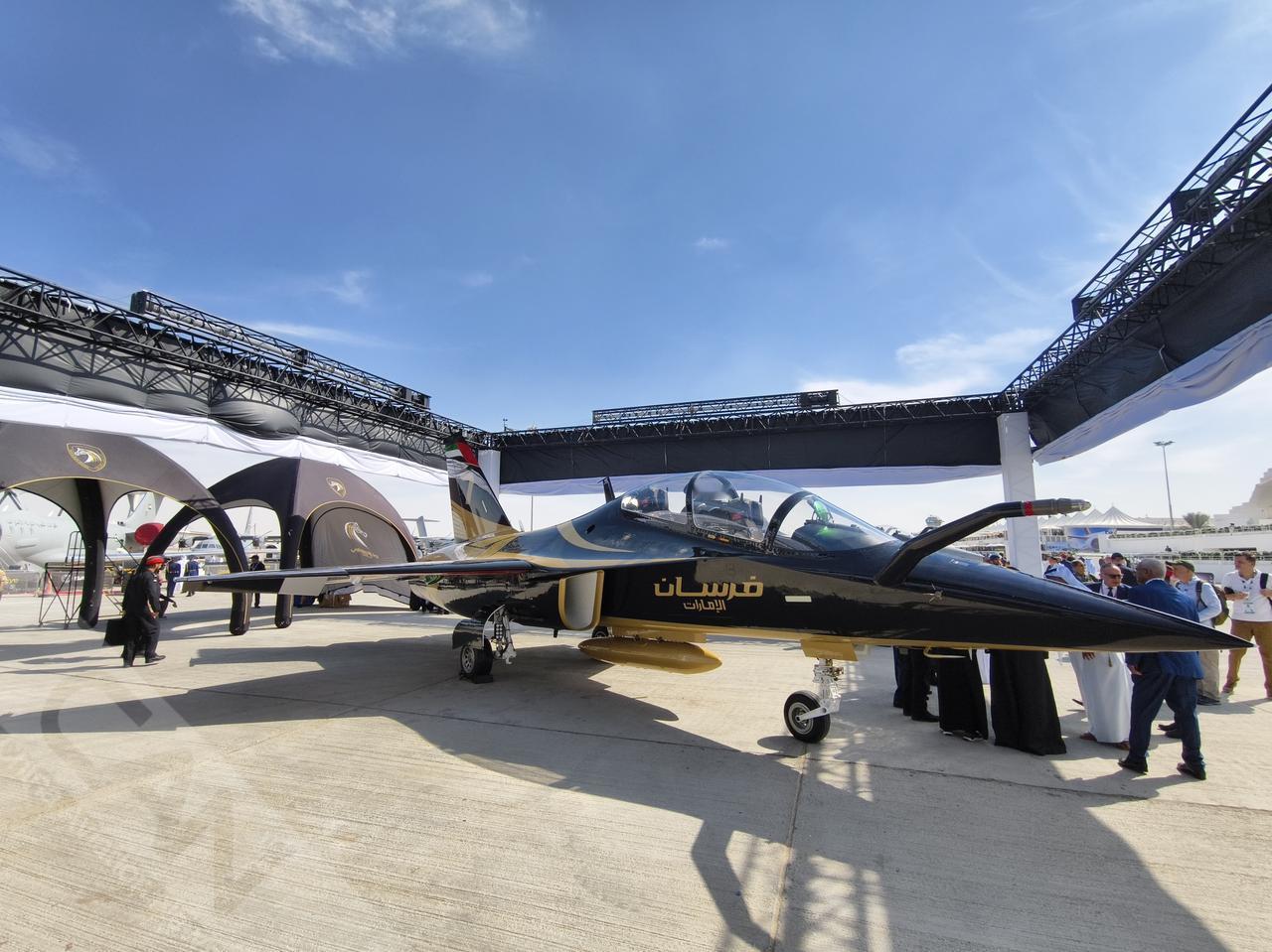 2025迪拜航展,阿联酋空军“骑士”飞行表演队换装L-15A高级教练机后首次亮相。带你近距离看细节。(摄影:吴紫磨)
