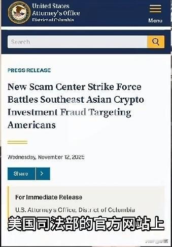 “电诈者虽远必诛”美国正式下场打击电诈。司法部牵头11月12日成立,高规格的“打击诈骗中心工作组”由FBI,特勤局等多部门组成。 这个工作组具有强大的权限,简单的说在美国除了总统以外,没有他们不能查的。同时他们强调主要职责是打击“跨境电诈”也就是意味着美国又要“长臂管辖” 成立短短几天已查获约四亿美元的加密货币,并对另外8000万美元启动没收程序,将返还受害者。 若干个工作组已经前往柬埔寨,缅甸,老挝,泰国等东南亚国家。 在缅甸两个诈骗中心采取行动,查获针对美国的诈骗网站,及卫星终端。 在泰国,FBI特工与当地警方合作打击窝点 在印尼,联合印尼警方打击巴厘岛的诈骗网络。 工作组对外公布的数据:诈骗每年给美国民众造成近100亿美元的损失。 如此高规格的工作组,表明美国已经打击跨国电诈提升到国家战略安全层次,而不再是普通的案件。 这次电诈慌不慌。