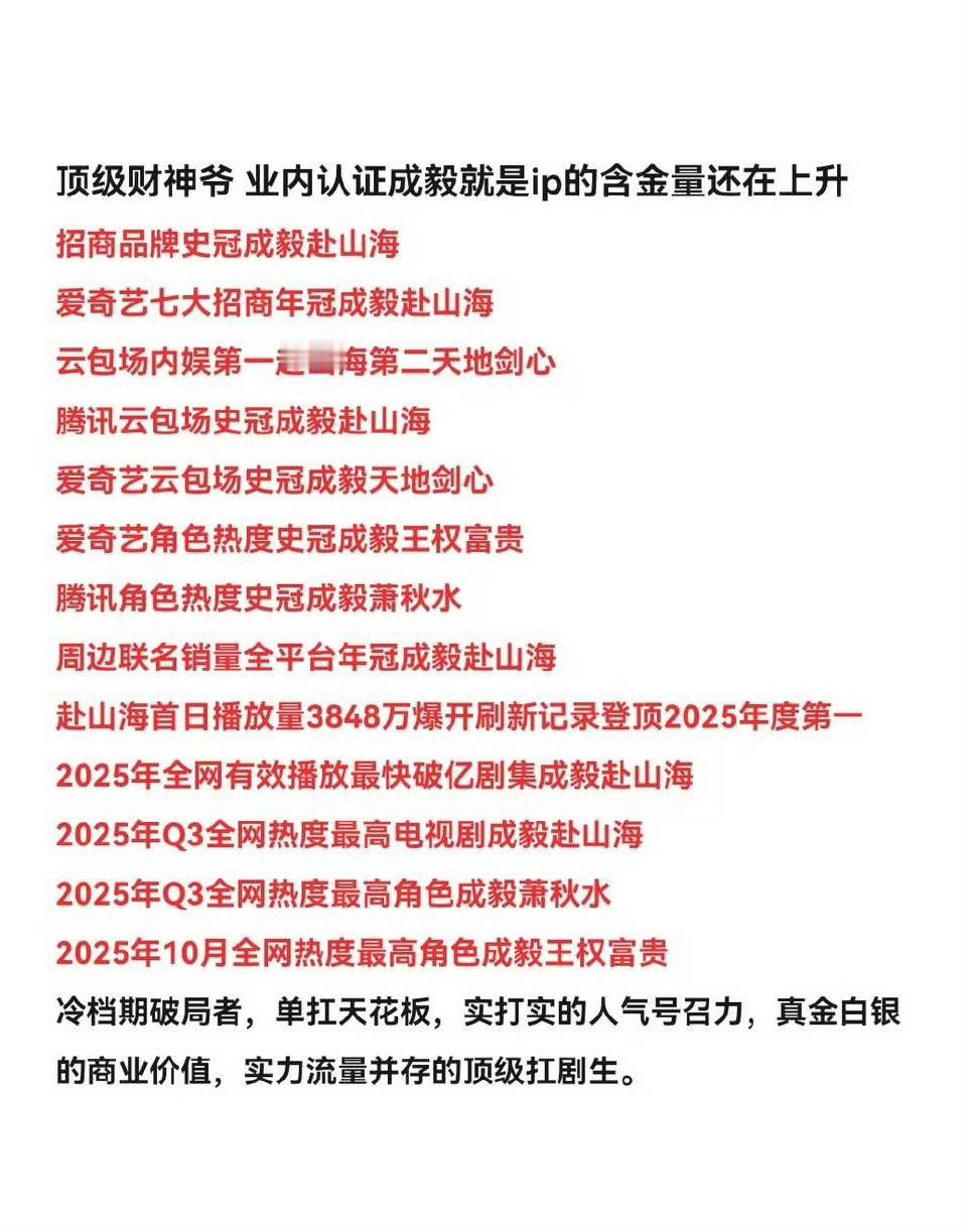 成毅赴山海卡牌销售再破记录!!!创爱奇艺平台历史新高!另外招商联名周边云包场内娱第一!成毅顶级扛剧能力内娱天花板!