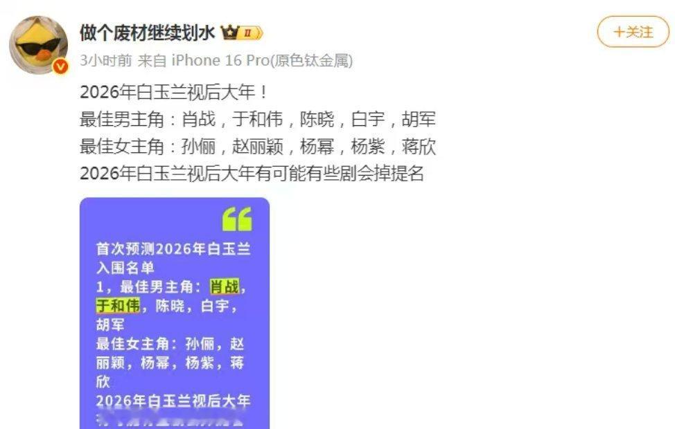 某人通稿来了,讲真的白玉yu兰爆出这么多上不了台面的事,它做啥我都不奇怪。不过我又想起某家说,他们那个电影必提三大奖就搞笑,结果。。。