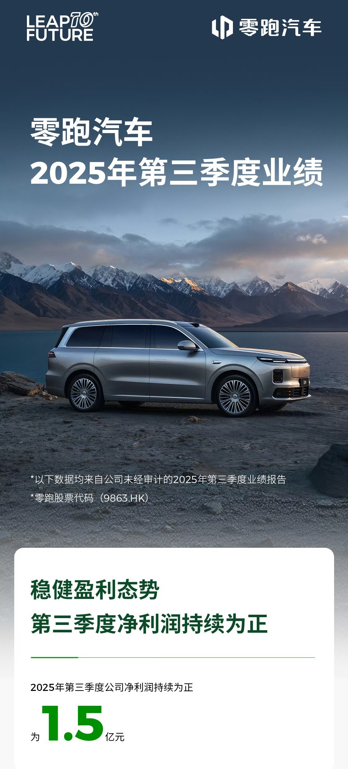零跑汽车第三季度持续盈利,达1.5亿是新势力中为数不多盈利的车企