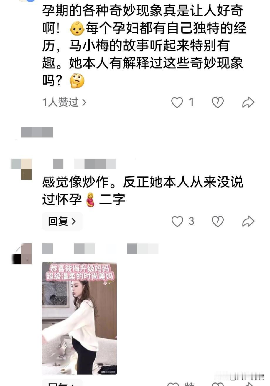 大家发现了吗 对于马筱梅的肚子 网上的版本太多了 连代yue的传闻都出来了 还说她开播就是酸辣粉/辣酸粉 都是一些垃圾食品示人 如果真有了 好歹也是公众人物了 就给孕妈妈做这样的榜样 又扯上俩孩子的亲妈和男保姆 唯恐自己没了流量加持 还有网友说等着看吧 为了一直有流量 估计后续剧情 就会上演流.产环节 更奇疑的一点是 网友也提出了 她本人从未承认过自己有喜 那么问题来了 她到底怀没怀呢