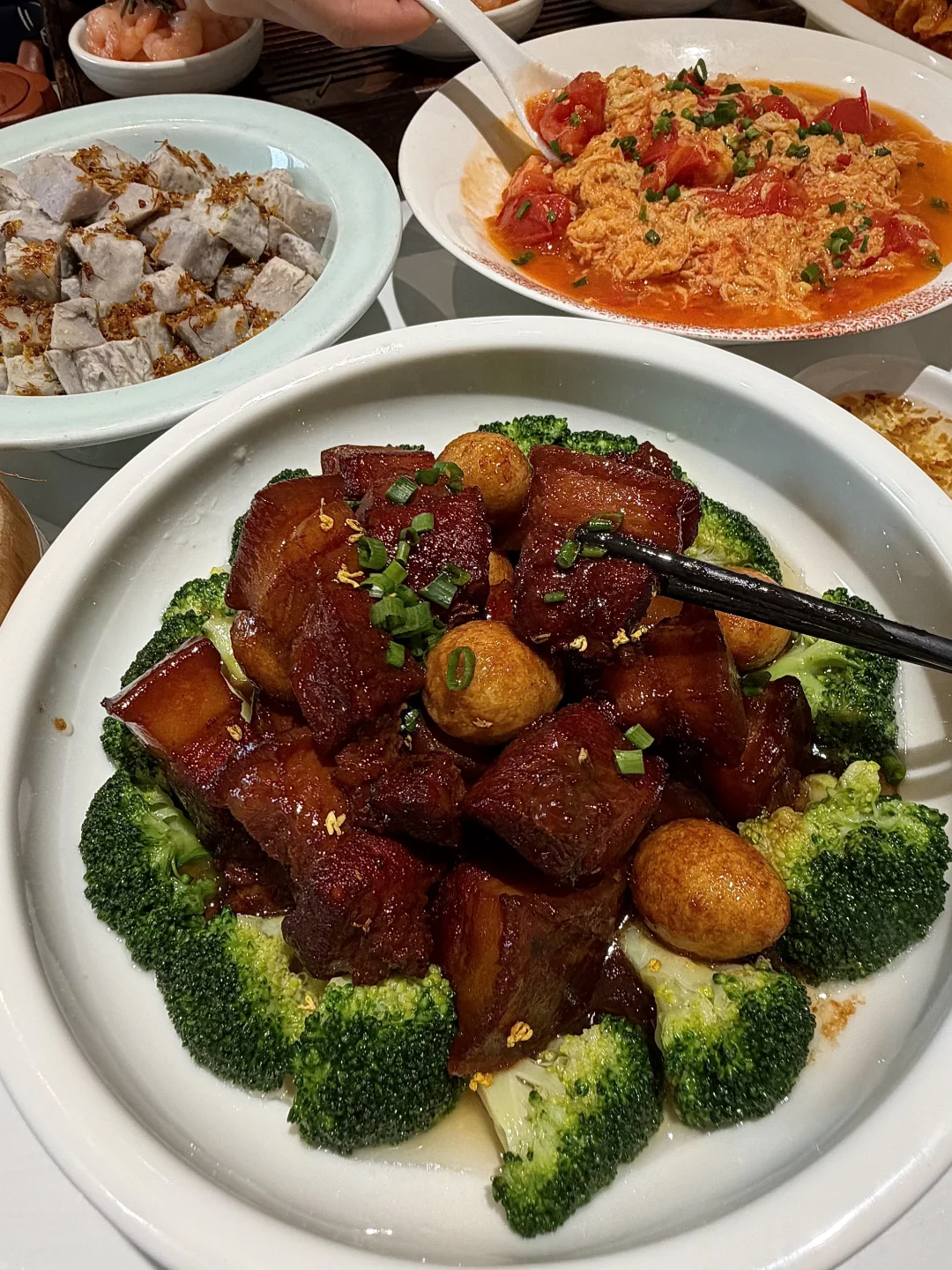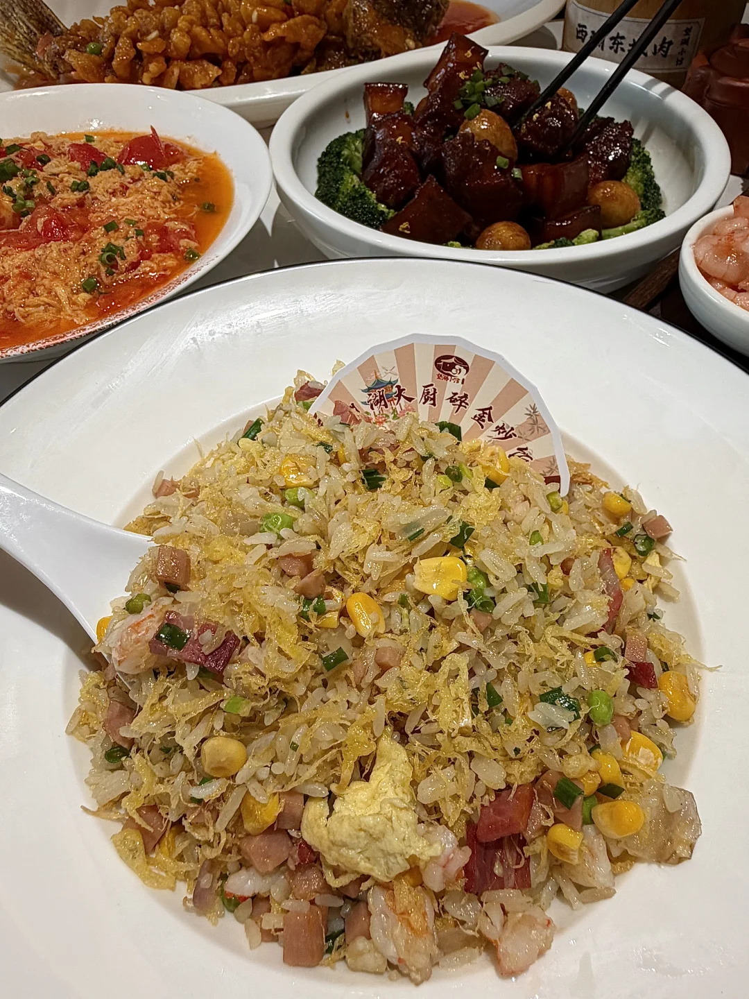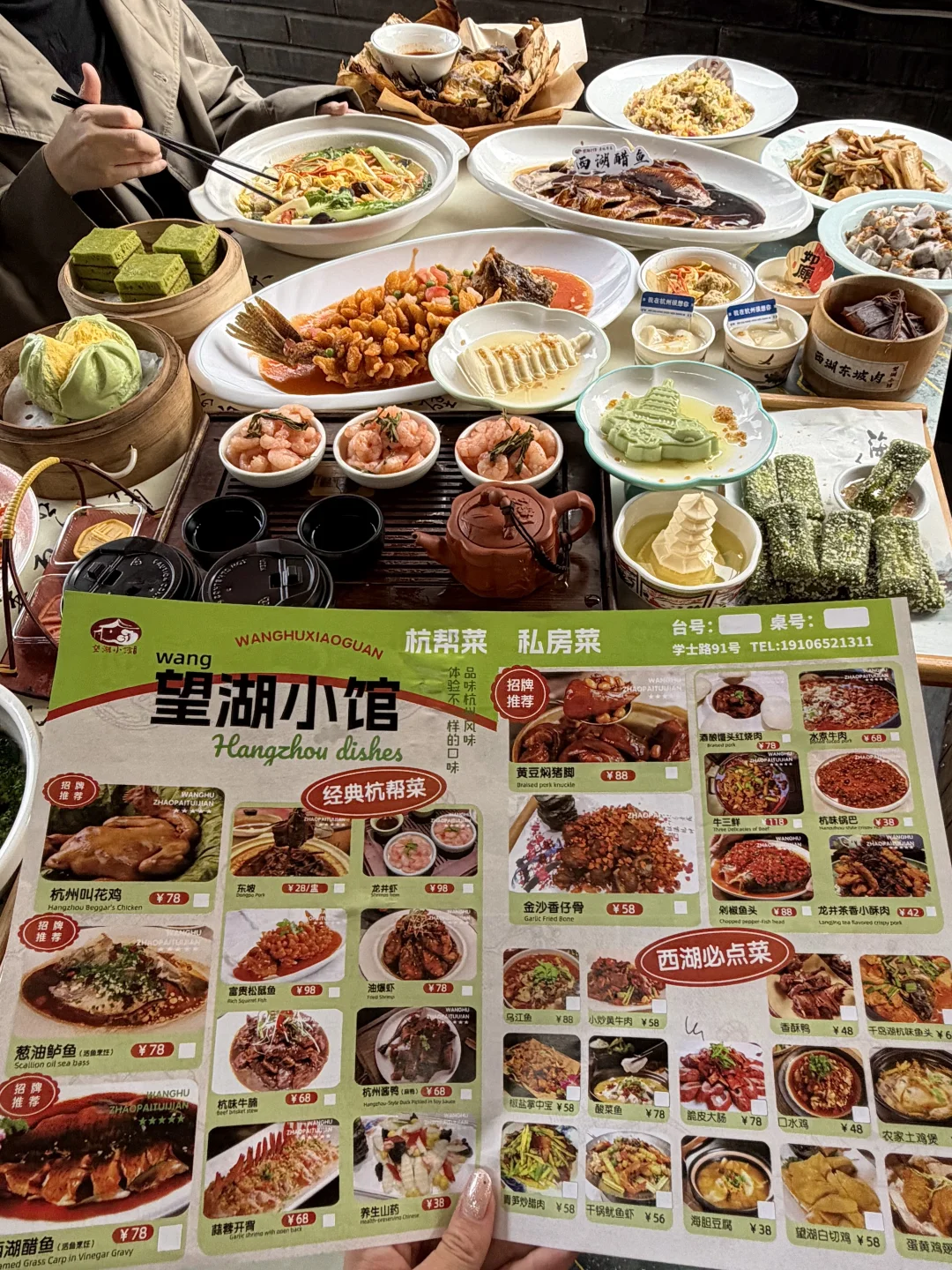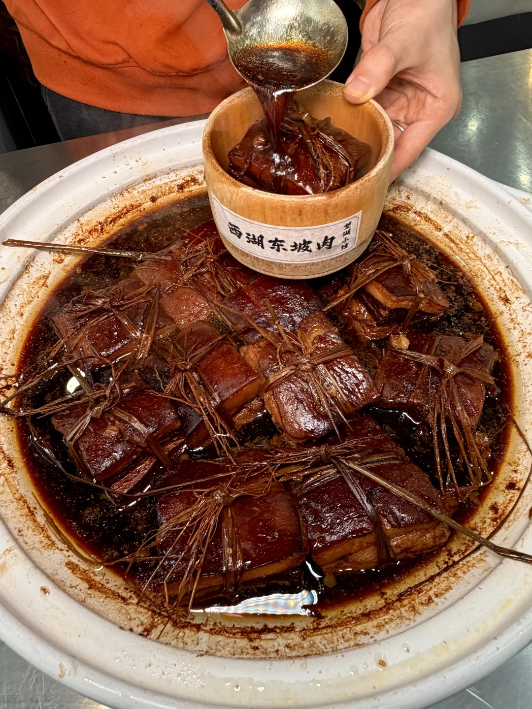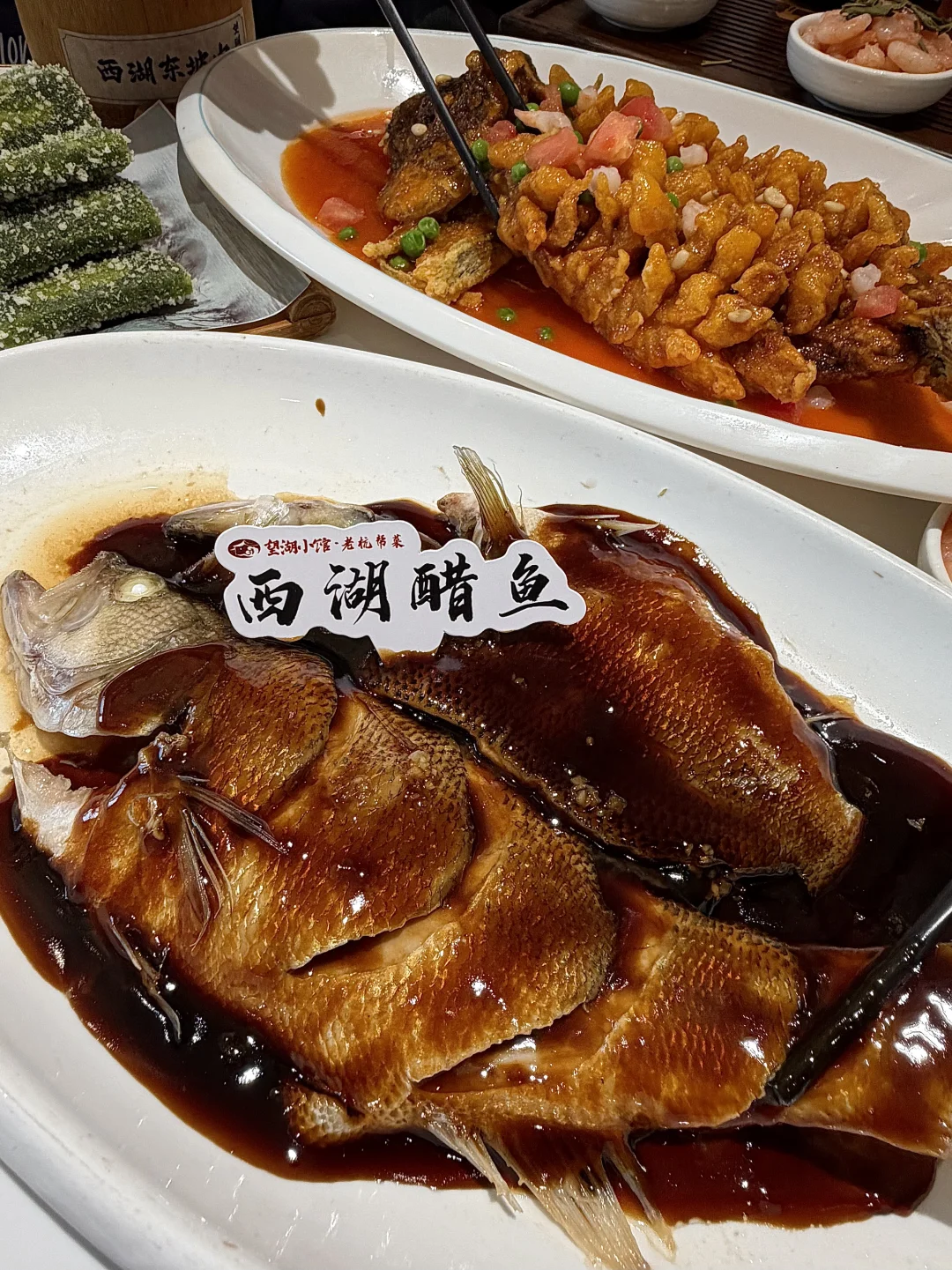 就在西湖边!本地朋友带我们去吃的😭 - ✔️西湖醋鱼 李宇春同款西湖醋鱼🐟酸酸甜甜比想象中好吃很多 ✔️大厨红烧肉 甜甜的红烧肉~软软糯糯拌饭一整个香晕🤤!! ✔️碎金蛋炒饭 不用去扬州!杭州也能吃到🍳碎金蛋炒饭了!吃到蛋丝就对味儿了!! ✔️肉丝年糕 糯叽叽肉丝年糕一口梦回童年🥹吃完还打包了一份
