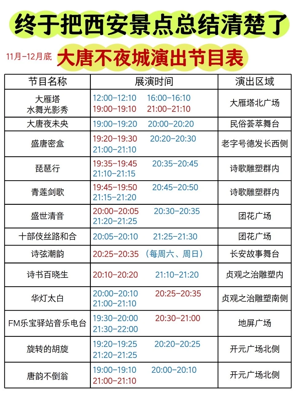 ‼️11月——12月大唐不夜城的演出表,请参考图2️⃣;