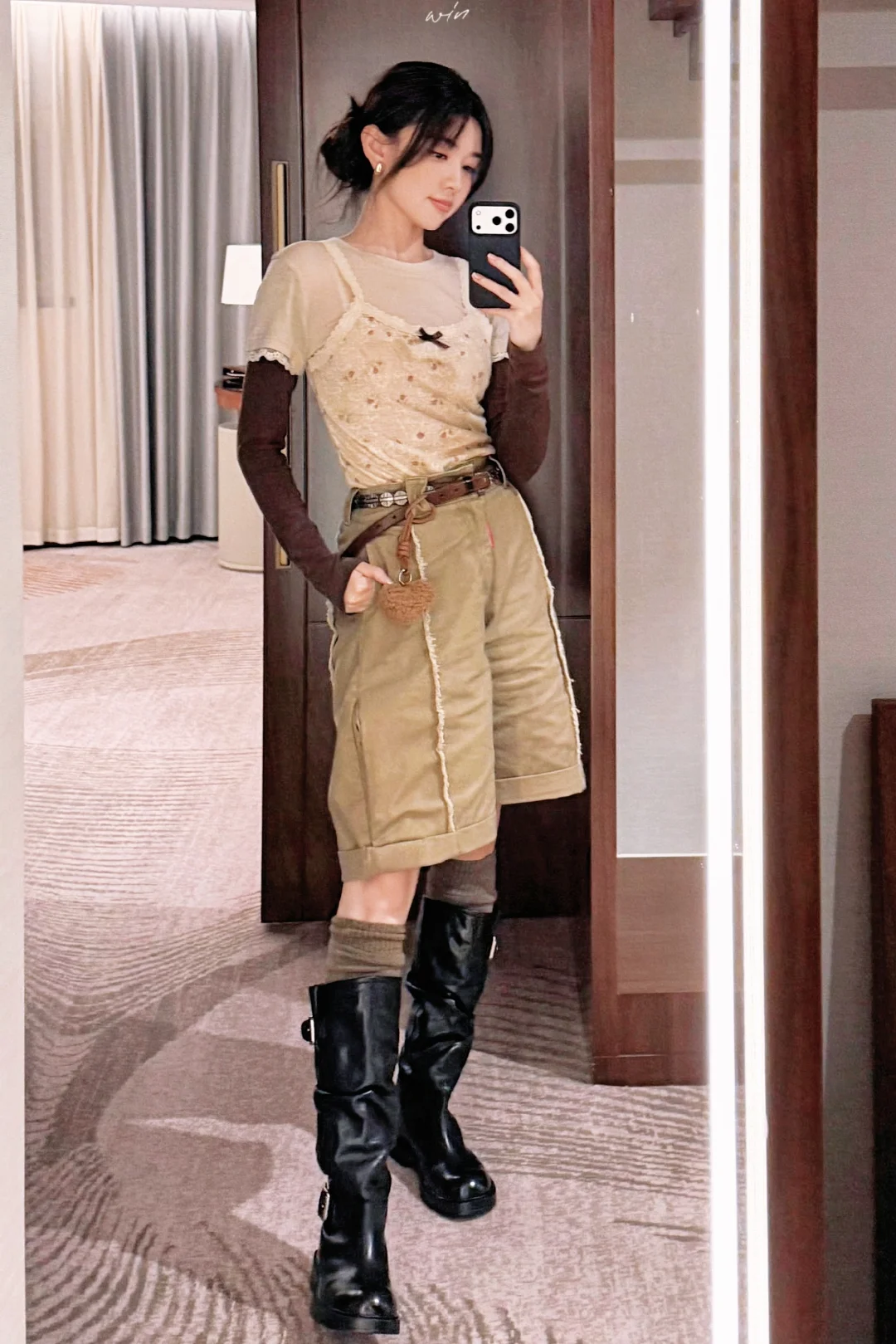 夏日清新穿搭,条纹背心+高腰短裤,轻松自在,元气满满!🌞👗💃