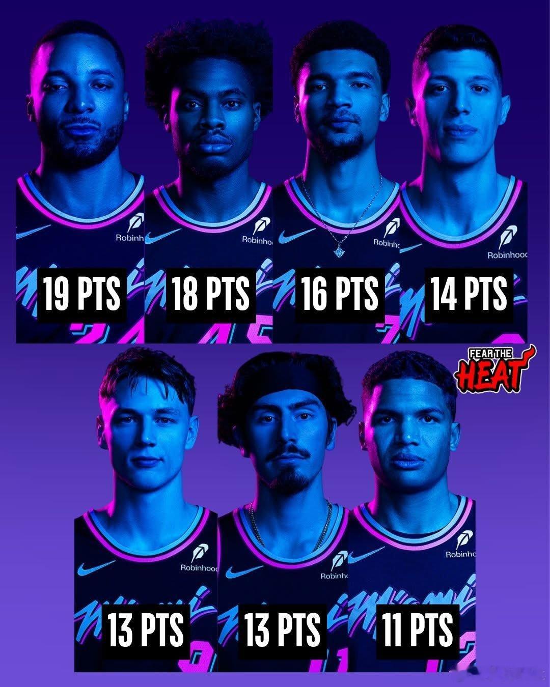热火七名球员得分上双,上场的10名球员中9名球员有得分入账