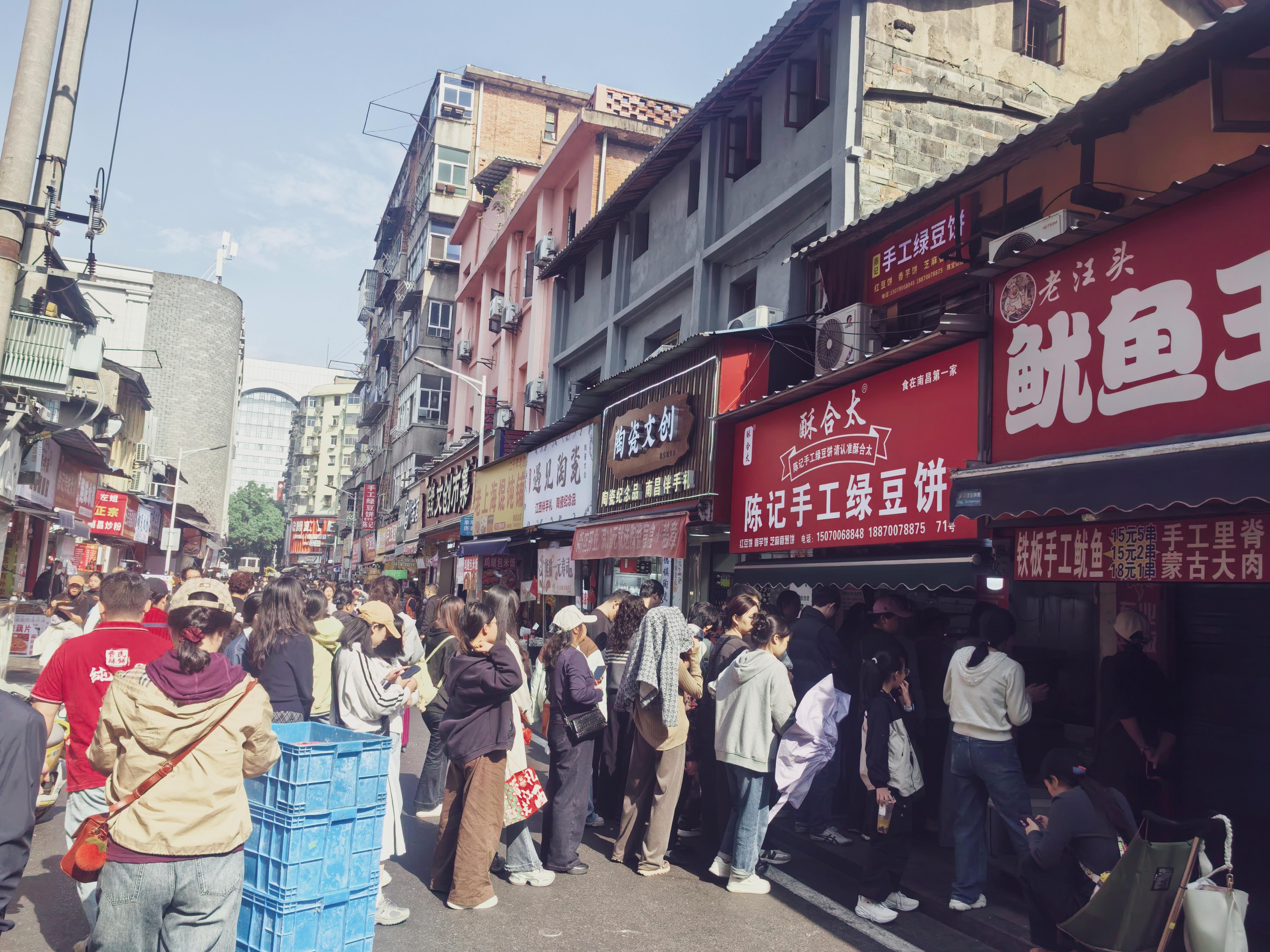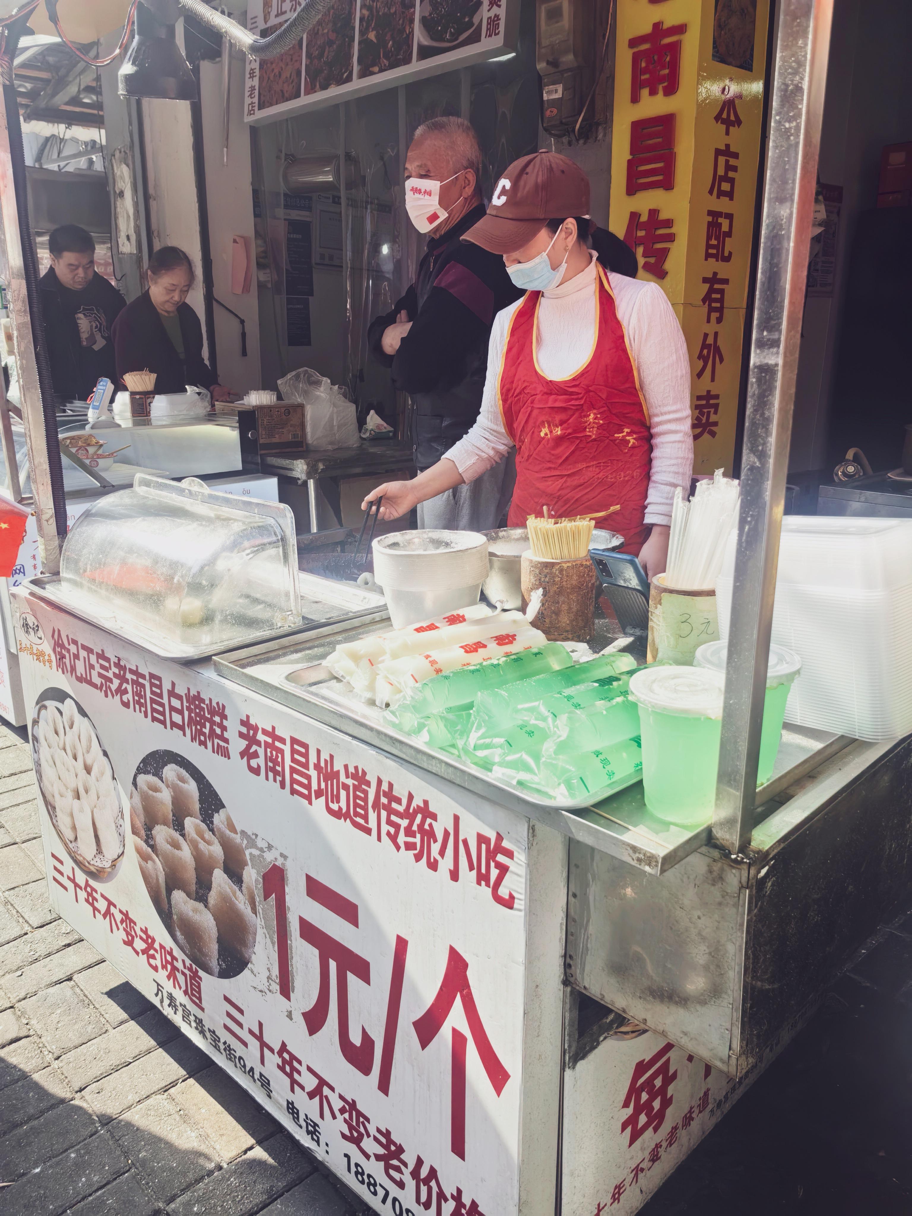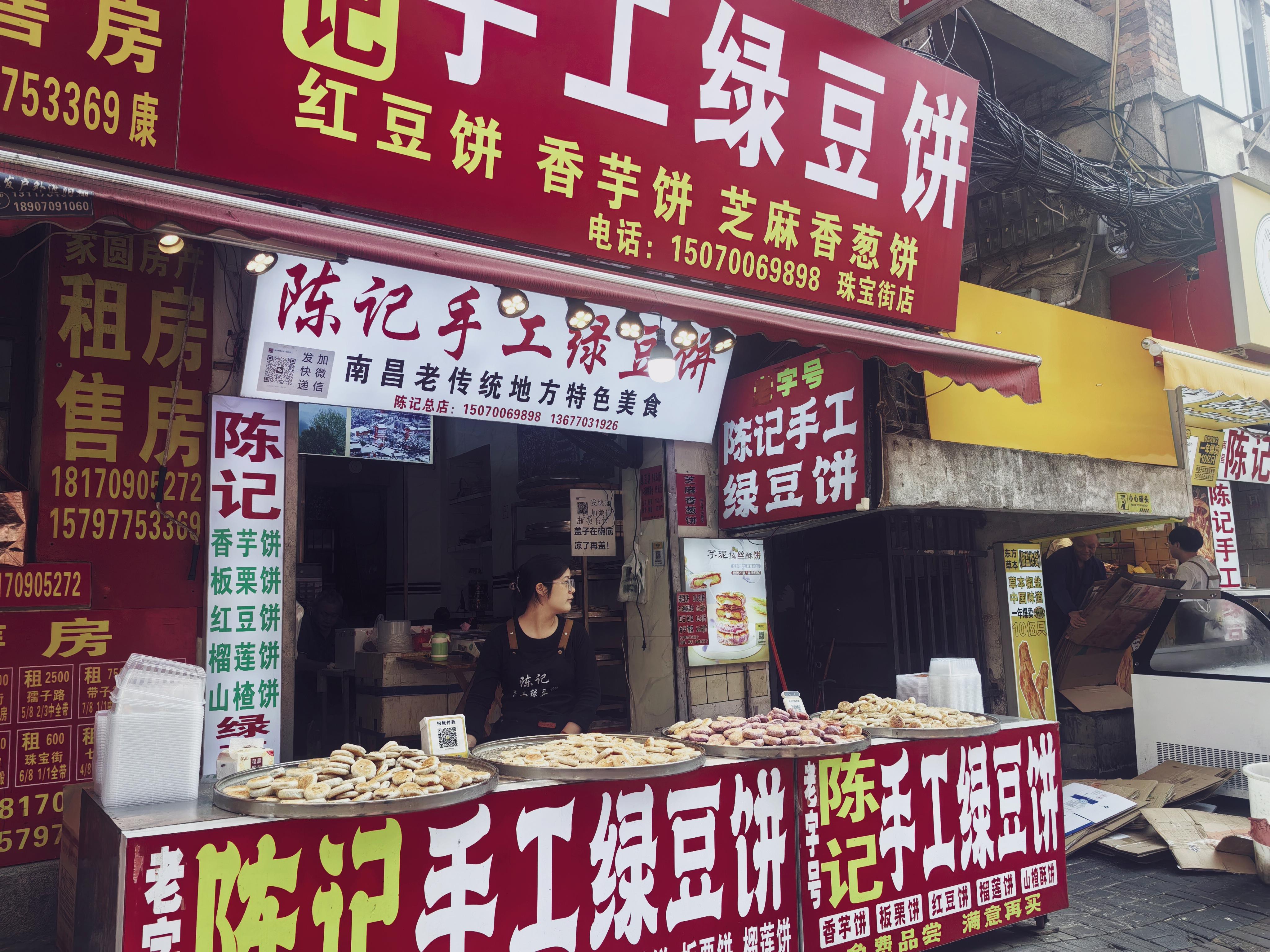 南昌珠宝街小吃,几家欢喜几家愁。同样是买绿豆饼的,有的不间断的排队,有的就无人问津