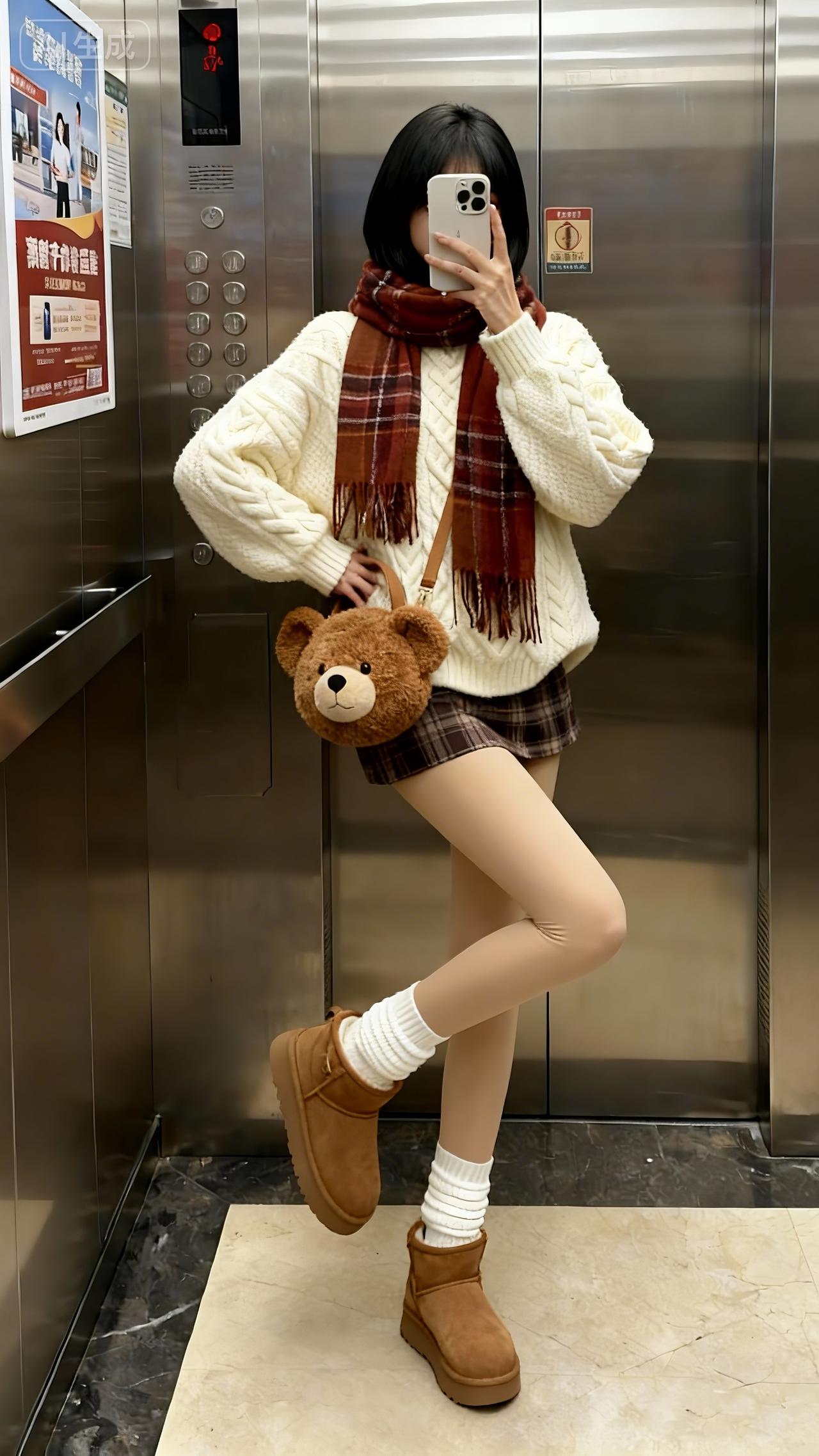 电梯大佬来也!音乐种草计划 秋冬穿搭 电梯拍照 学院风穿搭