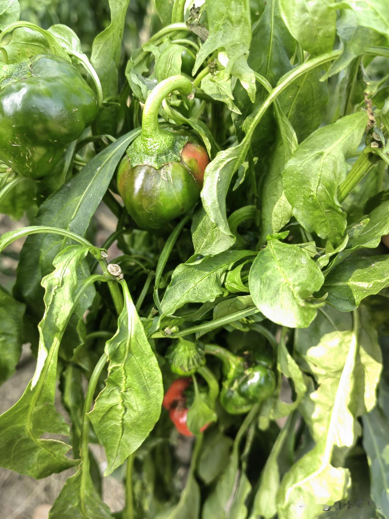 菜园里,那可可爱爱的小灯笼椒,长势喜人。