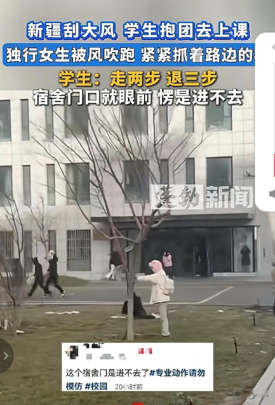 新疆的风有多大,看看这些吹得东倒西歪的孩子们就知道了……[泪奔] 11月17日当天新疆气象台发布了大风预警,乌鲁木齐南郊(包括红雁池等风口区域)出现了9~10级阵风。 10级风的威力能让瘦子直接被吹倒、“走两步退三步”,甚至宿舍门口就在眼前都进不去;像红雁池这类风口区域,阵风还可能接近11级,连独行的女生都得抓着树才不会被吹跑。 话说屏幕前的朋友们,你的城市降温了吗?[来看我]一起来聊聊吧![比心][比心][比心]