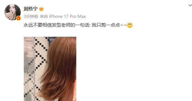 哈哈哈哈哈 ,刘些宁永远不要相信发型老师的一句话:我只剪一点点
