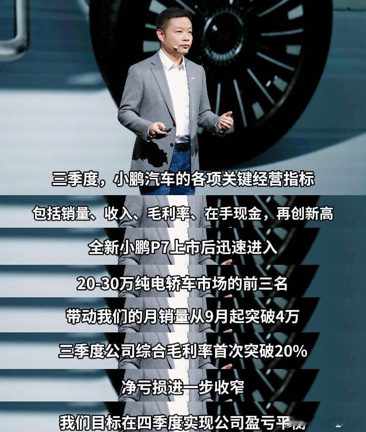 何小鹏:第三季度公司综合毛利率首次突破20%,净亏损进一步收窄,我们目标在四季度实现公司盈亏平衡。