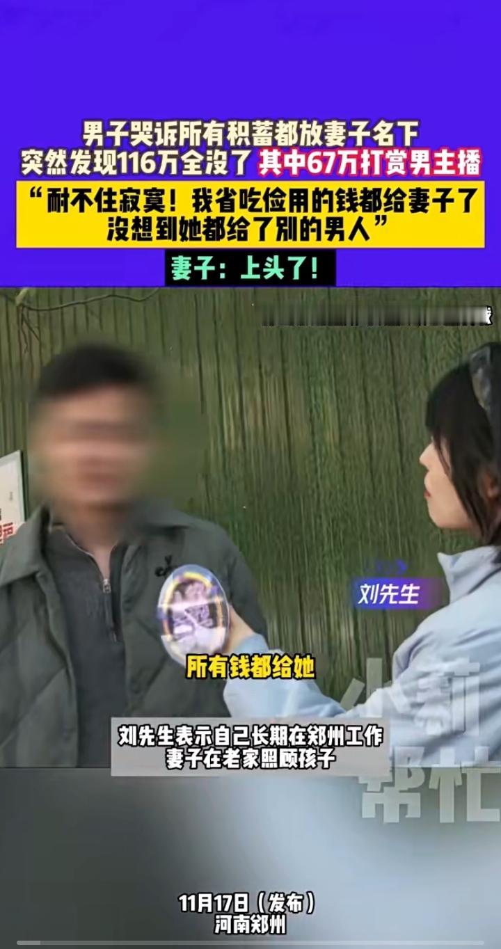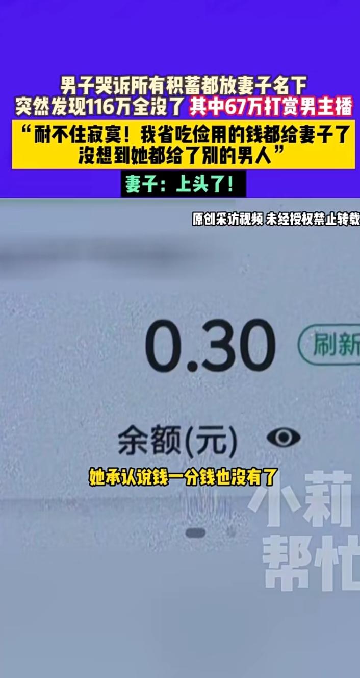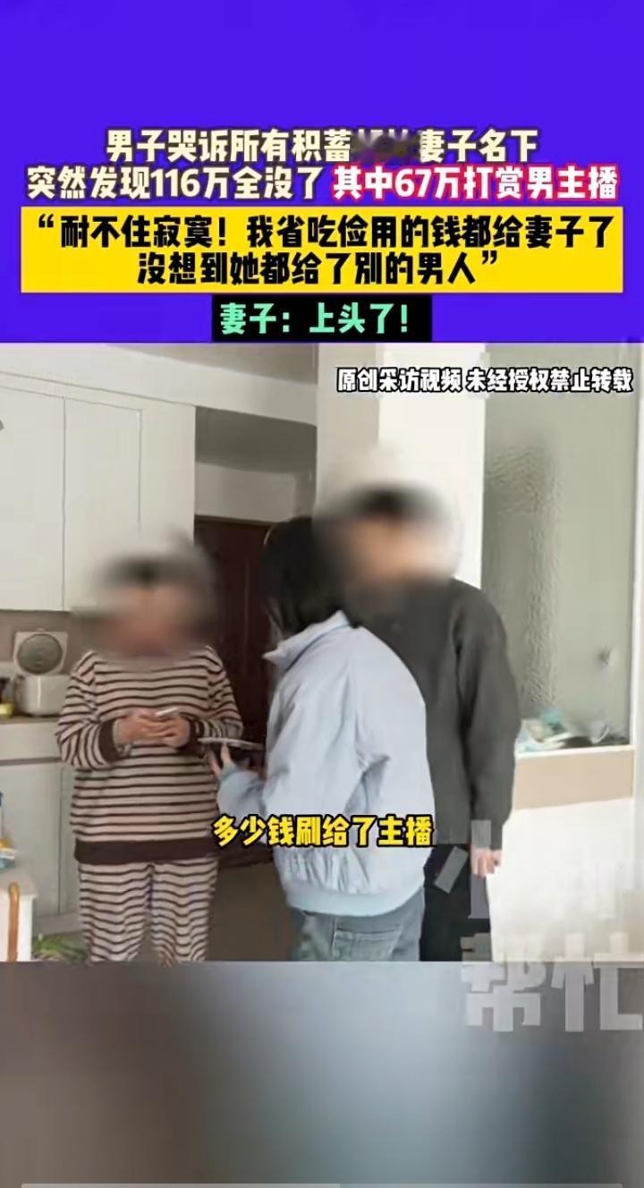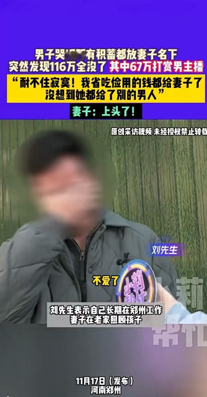 虚拟诱惑毁掉家庭:宝妈8年挥霍百万元引发的反思 11月17日,河南郑州一名全职宝妈被曝8年间将家庭积蓄116万元中的67万元用于打赏男主播,另负债8万元。丈夫刘先生称自己常年在外省吃俭用,每月仅花300元租房,收入全交由妻子保管,发现存款耗尽后崩溃提出离婚。妻子承认因“上头”参与直播打赏,但强调未与主播线下见面。 这是一场家庭的崩塌,也是现代社会“虚拟诱惑”与“现实责任”之间的激烈碰撞。一个普通的全职宝妈,曾经的家庭支柱,竟在短短八年里,将积蓄几乎全部耗尽,只为了那一场虚拟世界里的“心动”。她的故事,似乎是千千万万个普通家庭的缩影,却又在细节中折射出更深层次的社会问题。 你是否曾在深夜里,点开一场直播,只是为了打发孤独?你是否也曾被主播的甜言蜜语所迷惑,觉得“只是一时的娱乐”,却不知道,这一时的“放纵”正逐渐侵蚀着家庭的根基?这位宝妈的“上头”,是不是我们每个人都曾经历过的“虚拟诱惑”?只不过,她的选择,最终换来了家庭的破碎。 更令人唏嘘的是,她的丈夫刘先生,平凡又坚韧,每月仅花300元租房,辛苦在外打拼,只为给家庭提供一点点稳定的生活保障。面对妻子的巨大亏空,他的崩溃、愤怒甚至绝望,是否也代表了无数家庭中“无声的呐喊”?他们的故事,似乎在告诉我们:在这个信息爆炸、诱惑无处不在的时代,家庭的守护变得比以往任何时候都更加艰难。 但这背后,隐藏的不是简单的“责任归属”问题,而是我们每个人心中那份“虚荣心”“空虚感”与“安全感”的缺失。为什么会有人为了虚拟的掌声和关注,抛弃了现实中的温暖?为什么我们在追求“快感”的同时,却忽略了最重要的责任和担当? 这场家庭危机,或许只是冰山一角。它引发的,是我们对“家庭价值观”的深刻反思。我们是否也在无形中被“虚拟世界”绑架?我们是否也在某个角落,为了所谓的“成就感”或“认同感”,迷失了自己最初的初心? 故事还在继续,反思也在进行。也许,最需要的不是责备,而是理解与共鸣。毕竟,每个人都在努力在虚拟与现实之间找到那份平衡。而这,也许正是我们这个时代,最需要面对的课题。你,准备好去思考了吗?家长消费观