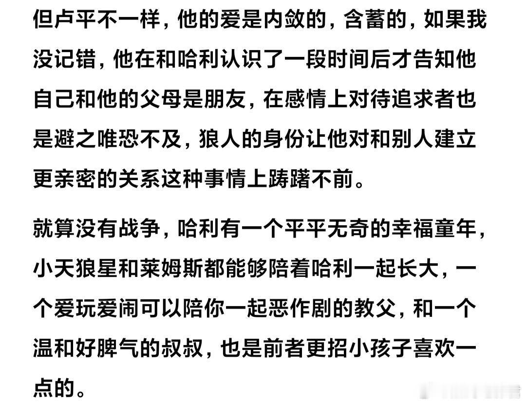 《哈利·波特》中明明卢平比小天狼星更早出现,为什么哈利更爱小天狼星?