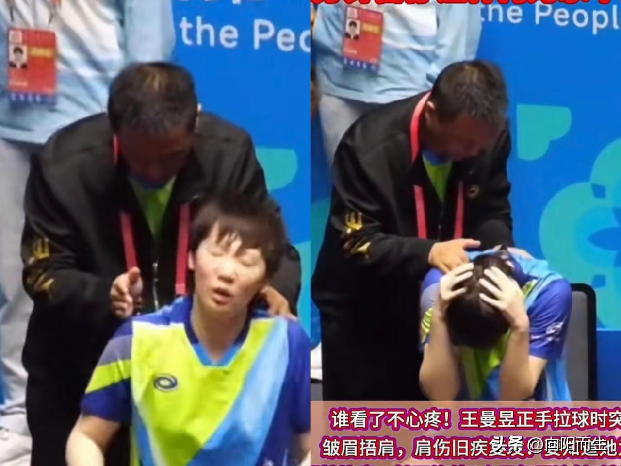 突发! 王曼昱赛场扭脖子叫医疗暂停, 3:2险胜后迎硬仗? 全运会女团赛,曼昱与钱天一对阵时叫了医疗暂停,可能是脖子扭到了,队医给她按摩了肩膀,又进行了拉伸,随后继续比赛。 曼昱已经回酒店休息了。黑龙江女队3:2战胜江苏队晋级四强,曼昱两分,范姝涵一分。半决赛黑龙江女队对阵河北队,希望曼昱健康完赛!加油! 曼昱这次叫医疗暂停,看得出她当时身体状况不太好。不过队医及时处理,她还能坚持比赛,这毅力真不是一般人能有的,不愧是实力战将。 黑龙江女队能晋级四强,曼昱功劳不小,拿了两分呢。接下来的半决赛对阵河北队,这肯定是一场硬仗,就看黑龙江队怎么布局战术了。 曼昱在场上是绝对的主力,她的状态对比赛走向影响很大。希望她回酒店能好好休息,调整好身体和状态,以最好的姿态迎接下一场比赛。 家人们咱就是说,曼昱这拼劲真的看哭!赶紧养好身体,半决赛和队友一起冲呀,坐等黑龙江队再创佳绩,为曼昱疯狂打王曼昱世锦赛 王曼昱 王曼昱人品