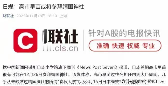 原本以为在中方多次抗议下,高市早苗会或许会收敛一点,可是万万没想到,她尽然还要去参拜靖国神社,这不是就是典型的想当美国的走狗嘛。 也是因此,日本今天的股市大跌一波,看来也是不冤枉! 不过呢,高市早苗干这事之前想想3500万同胞会不会同意,更要问问南京的30万死难者同不同意!