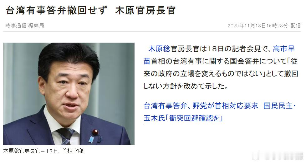 木原稔官房长官在18日的记者会上,再次叫唤“不会改变以往政府的立场”,也不会撤回高市早苗的狂言。补充:图2就是我想说的。