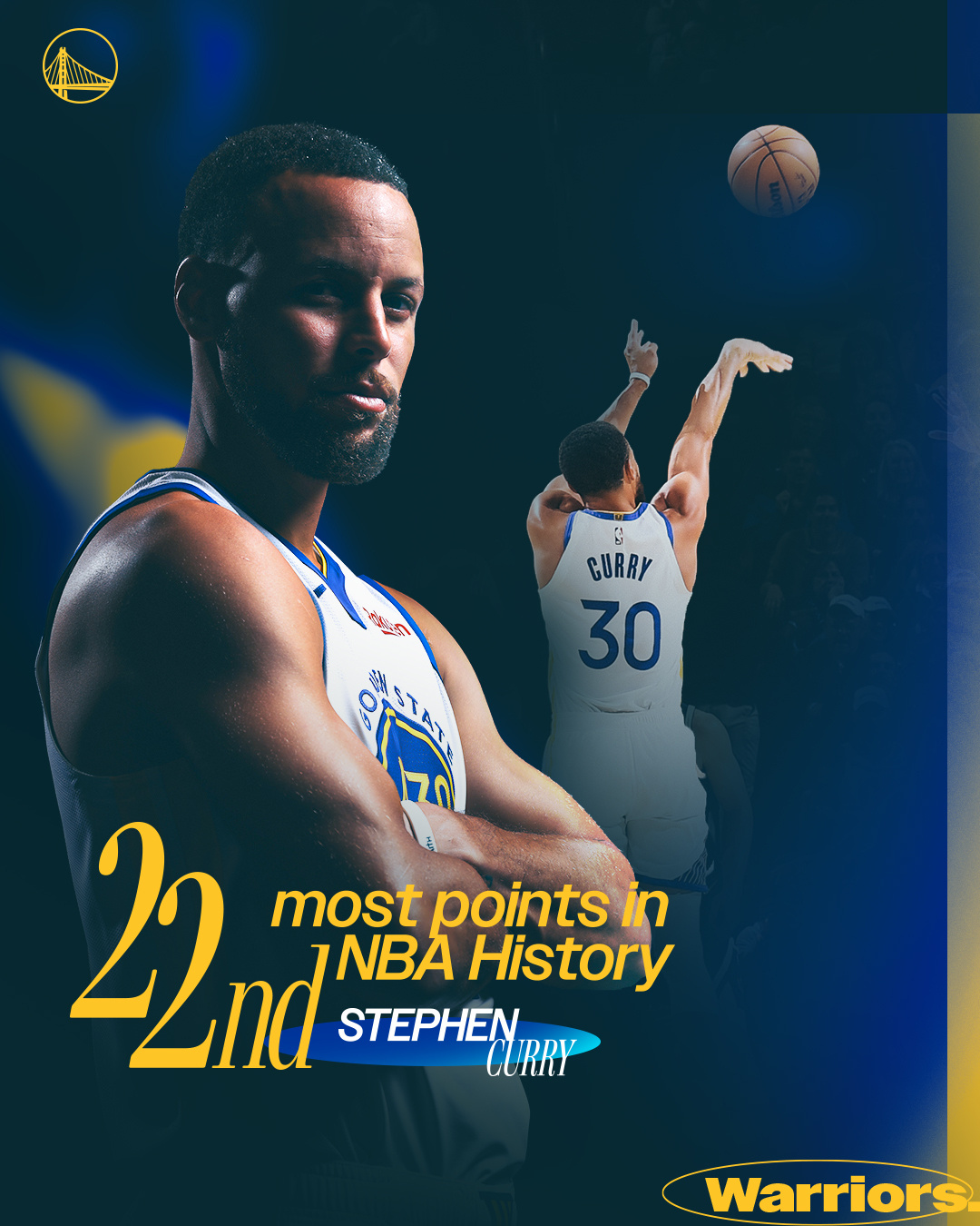 生涯得分里程碑🗣️斯蒂芬·库里超越文斯·卡特,升至NBA历史得分榜第22位