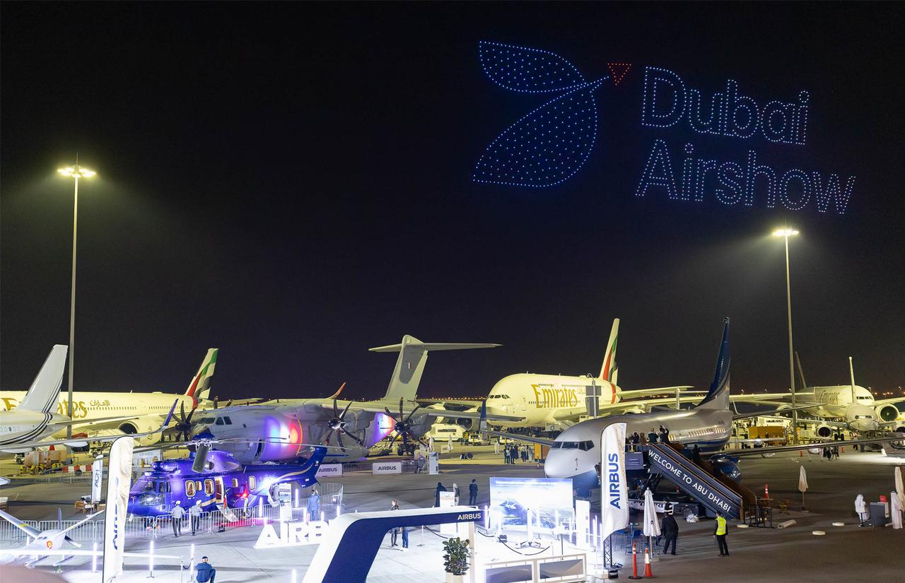 2025年迪拜航展首次举行夜间开放日,包括无人机表演、跳伞秀等活动。