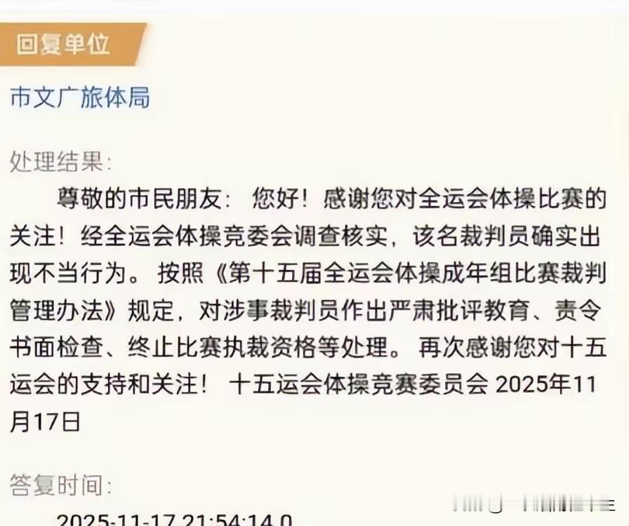 公然嘲笑运动员,被取消裁判资格! 在11月14日举行的十五运会体操男子个人全能决赛中,湖南选手张博恒在最后一项单杠比赛中出现失误,遗憾摘银。 令人愤怒的是,在张博恒单杠失误瞬间,一名裁判竟然表现出鼓掌、大笑等异常举动进行嘲笑,令人震惊! 作为裁判,没有一点职业道德及同情心同理心!如此裁判不配担当本职工作! 在有心网友的举报下,官方回应称已经取消涉事裁判工作! 大家觉得应该如何处理此等行为?!运动员公平性 体操评分标准 体育礼仪争议 张博恒身高