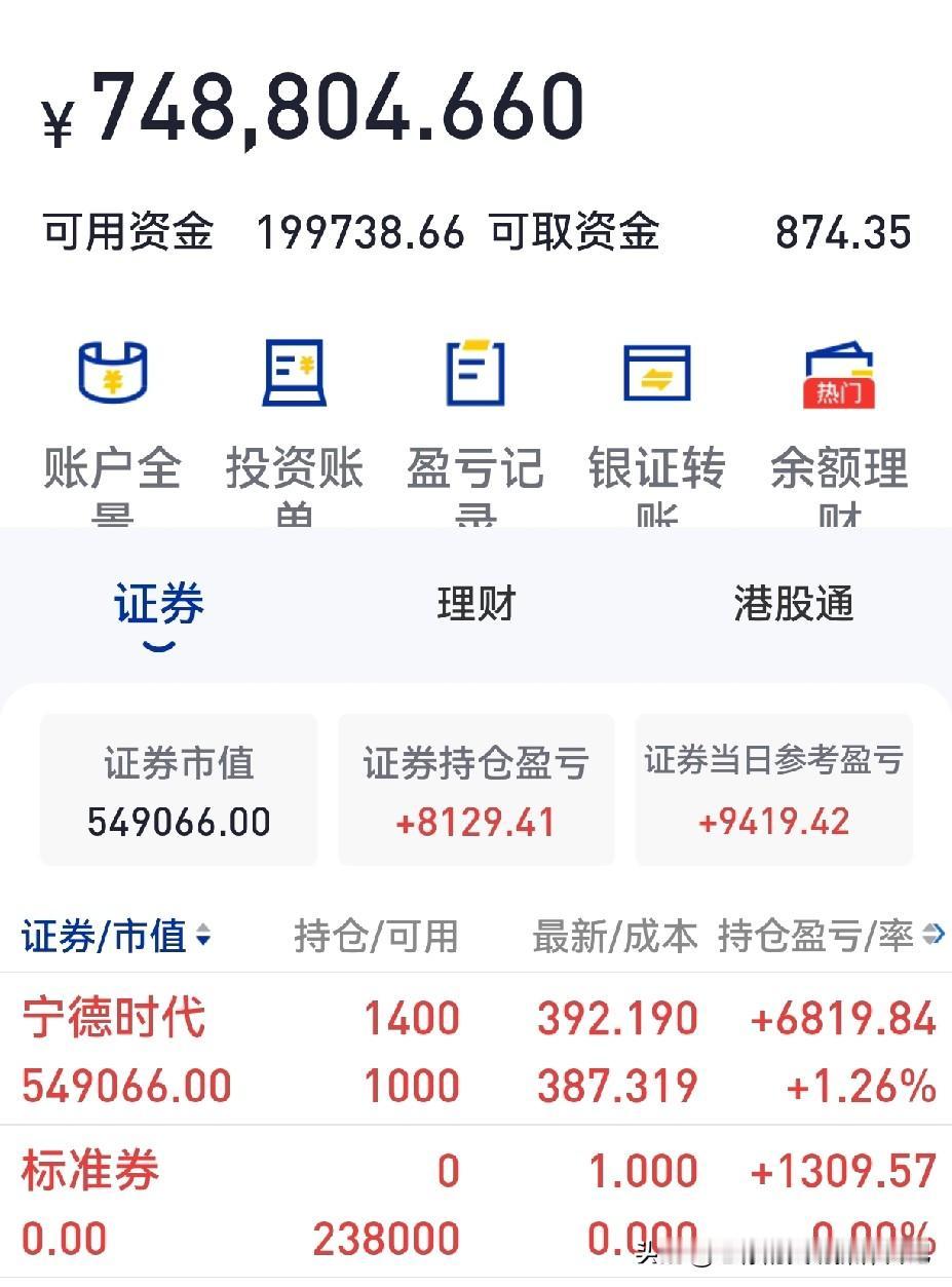 11月19日早盘,A股冲高回落延续调整走势,个股普跌,又是超4000只股票下跌,但是跌停数量比昨日要少,目前效应有所减弱,在指数没有站上5日均线之前对于指数还是要谨慎看空,操作上可轻指数重个股。 今天宁德时代逆势上涨,我浮盈9000多元,针对750宁德我的策略是回调逢低加仓,设384.5为止损位,跌破384.5止损,不破384.5做低吸高抛或持股待涨创新高。