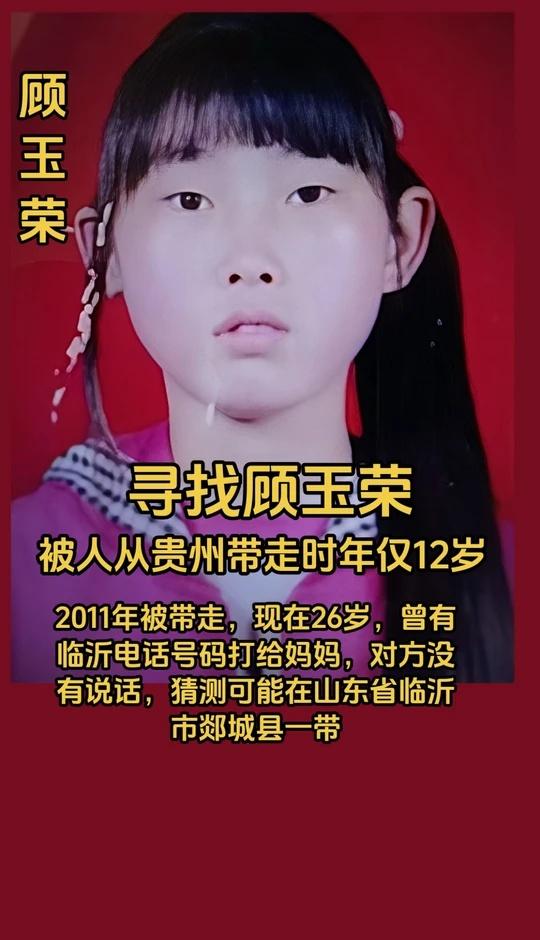 寻找女儿,在临沂 因为临近过年母亲在2011年12月22号晚上回到娘家与家人打年糕(从家到母亲娘家距离约10公里),独自留下小女儿在家。在12月23号这天,早上9点半的时候一位叫范*花的中年女性(年龄50岁左右),来到家里找母亲玩耍,发现孩子母亲不在便打电话给孩子母亲“询问好久回来”,母亲说“大约12点”,但是这位范*花并没有离开,一直在家和顾玉荣呆到中午约11点半的时候,范*花又给孩子母亲打了一个电话问“什么时候回来”,母亲说“现在可能要等到4点才能回来”,随后母亲让顾玉荣接过来电话让孩子去外婆家接母亲背年糕回家,但是顾玉荣因为嫌太远拒绝了母亲的请求。到了下午4点母亲回到了家,发现女儿和范*花不在家里,马上打范*花电话,母亲接连打了十个电话,打通了却一直没有人接听。这时母亲着急了,马上联系亲戚,邻居帮助寻找。次日,家里亲人建议母亲报警处理,母亲一直寻找到25号通过镇上监控看见范*花带着女儿去了车站并带走宝贝回家 寻人启事 寻人 临沂 临沂郯城