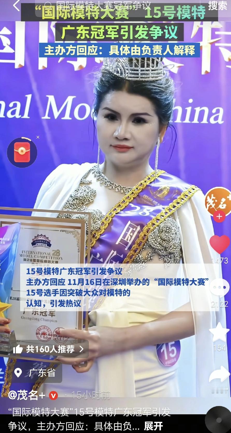 深圳模特比赛结果引议论,不少人看得摸不着头脑!最近广东赛区的模特比赛刚结束,15号选手摘得桂冠,可不少人看了一圈又一圈,都觉得这结果有点说不过去。这姑娘既没那种让人眼前一亮的气质,走台步也没什么气场,怎么就能拿冠军了? 这头组委会那边却一直含糊其辞。主席说自己身体不舒服,没法出来说话;副主席又说手头事太多,顾不上回应,反正就是没人正面解释。大伙儿私下里都在猜,难道这里面有啥不方便说的猫腻?毕竟模特圈的水到底有多浑,圈内那些弯弯绕绕的事儿,大家心里都跟明镜似的。 依我看啊,这种比赛就得明明白白才行。评委到底是谁、打分的具体标准是什么、冠军选手到底强在哪儿,这些都该全都摆到台面上给大家看。不然谁会信这是场正经比赛?现在连管事儿的部门都该介入查一查了,可不能让这种瞎搞的比赛带坏社会风气。 你们觉得啊?这种一看就不对劲的比赛结果,是不是真该给个让人信服的说法?