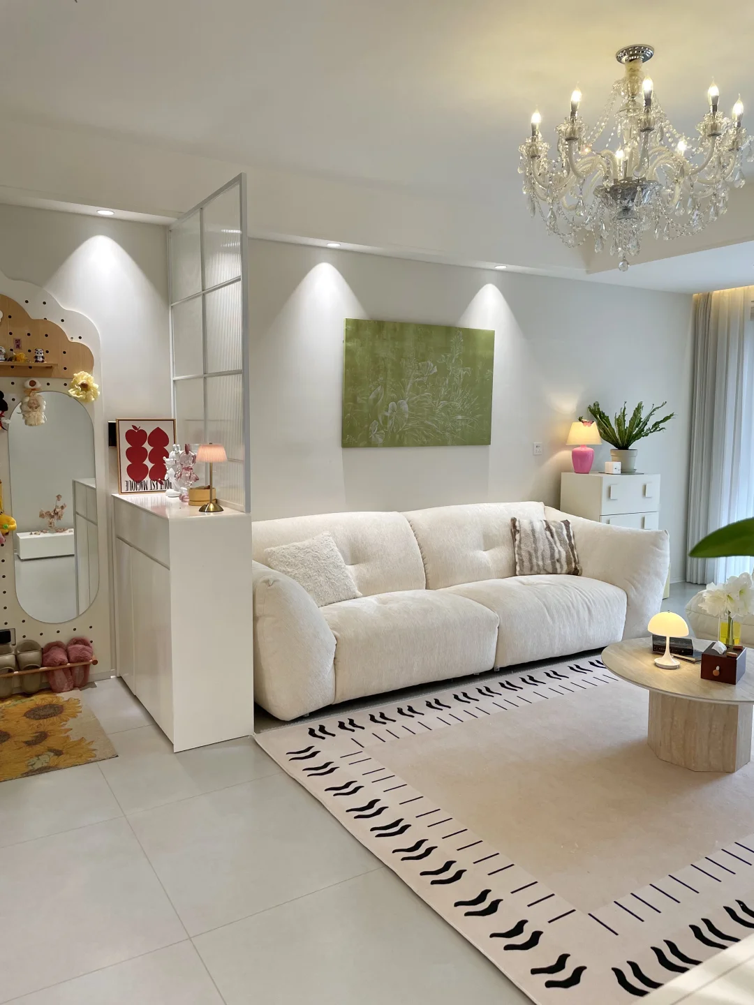 建面128平,套内104平奶油风 没有请设计师,简单的硬装 全屋以白色、奶油色为主 整体简单又清爽~