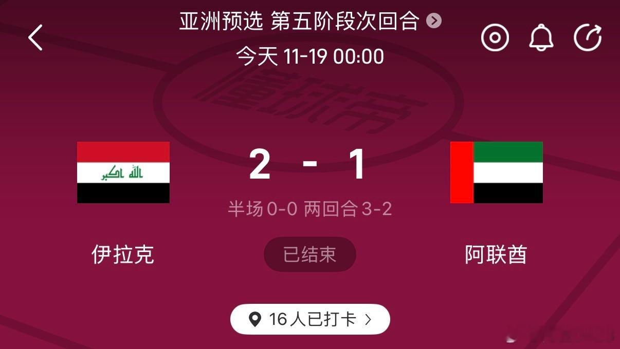 伊拉克主场2:1战胜阿联酋,两回合3:2,拿到亚洲区最后0.5个名额