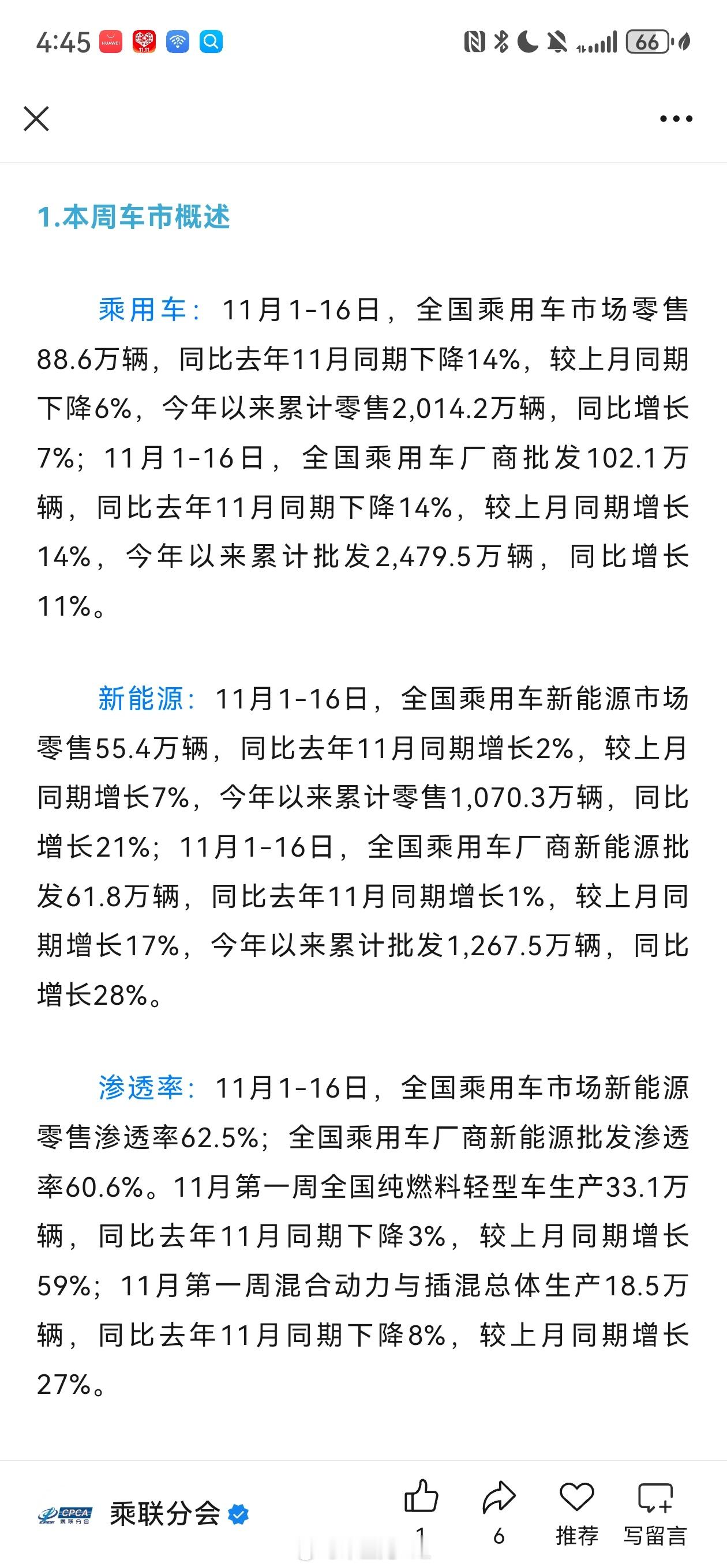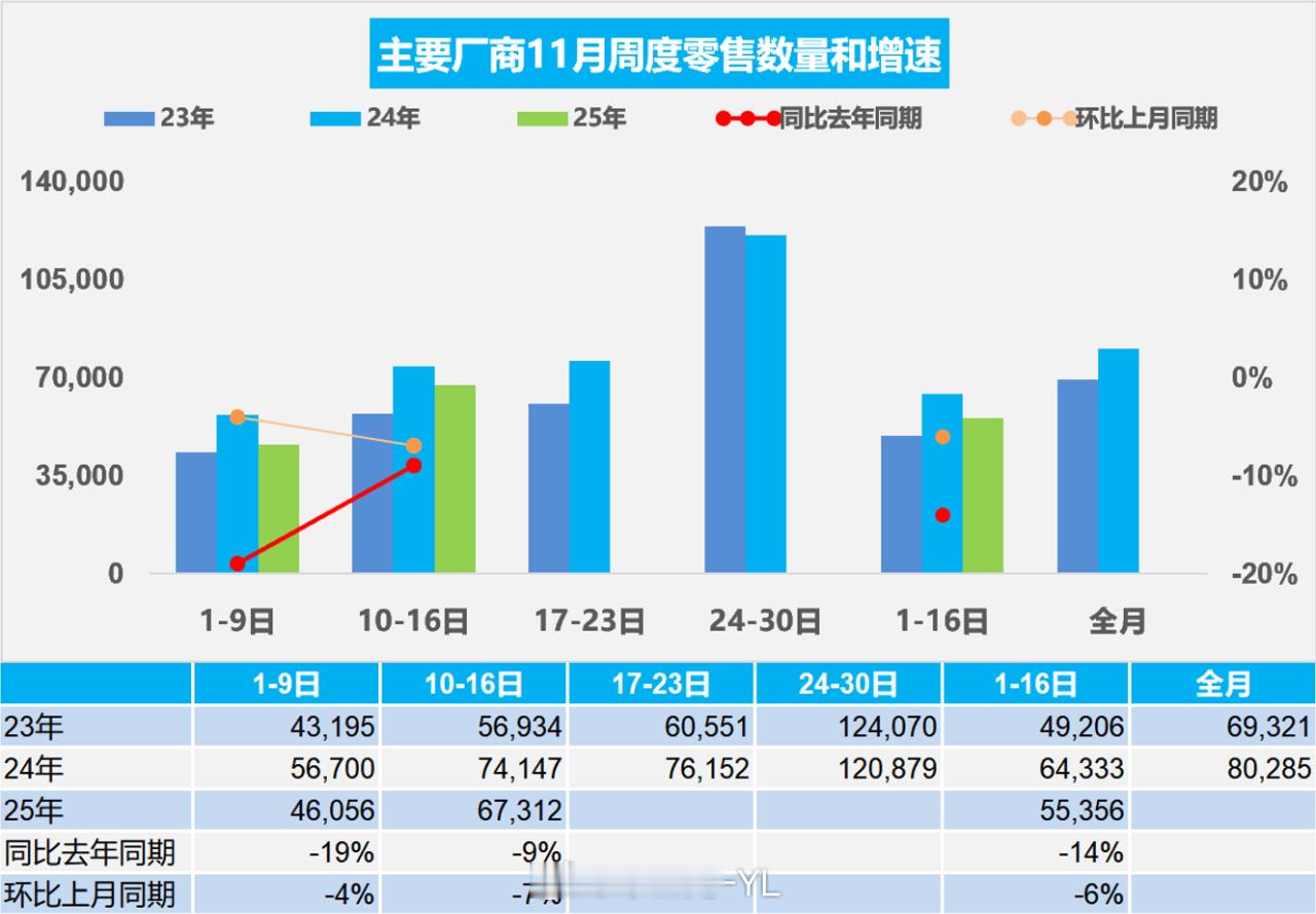 乘联会的半月数据显示,11月大家汽车消费热情要比去年稍微差一点点10月和去年相比出现拐点以后,今年最后两个月的翘尾没有去年同期那么翘了马上广州车展了,看看车展后的情况是否有变化