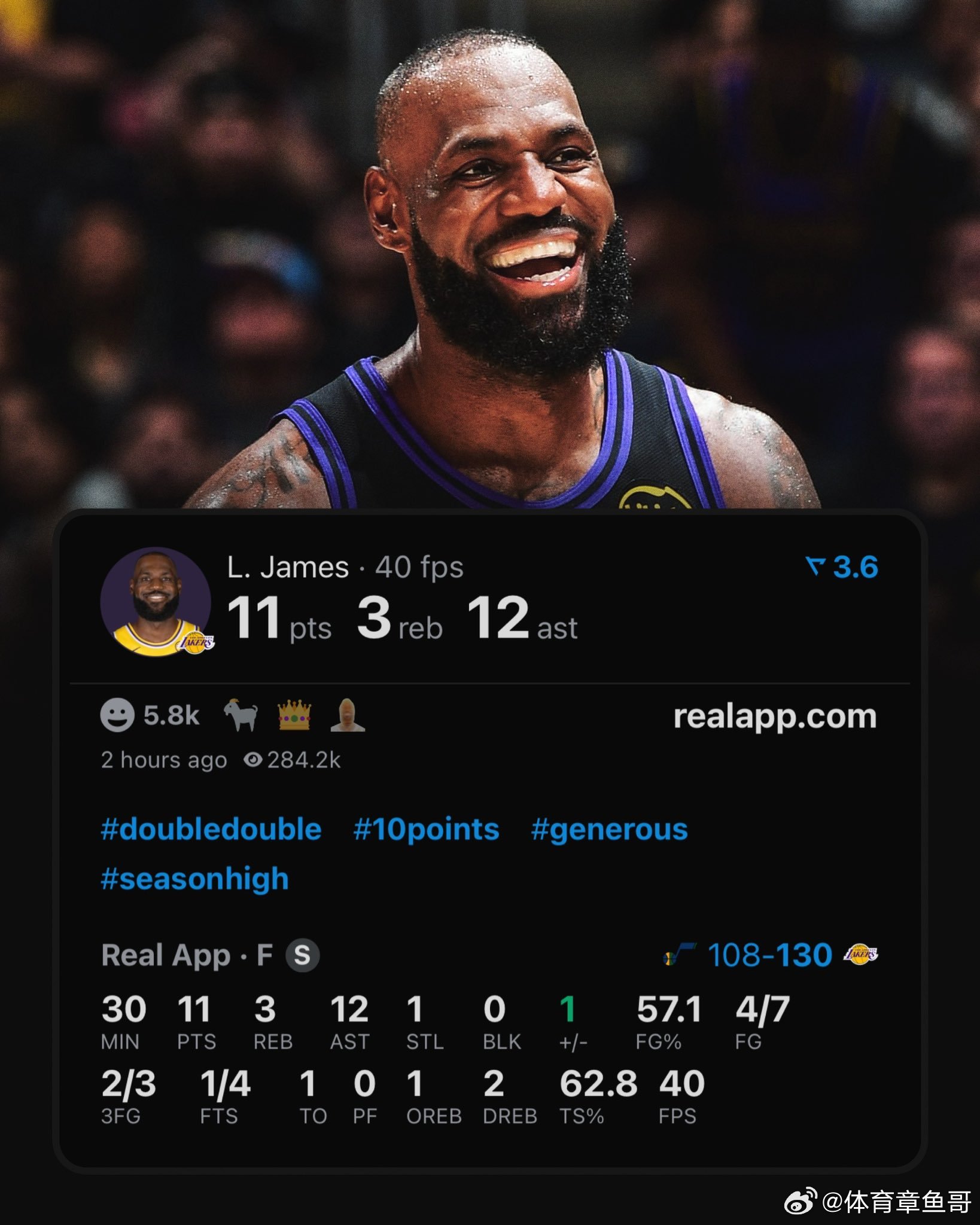 詹姆斯第23个赛季首秀:出场30分钟,得到11分12助攻,1次失误!投篮7中4,三分3中2!詹黑评价:詹姆斯正负值最低!真就一点不看球