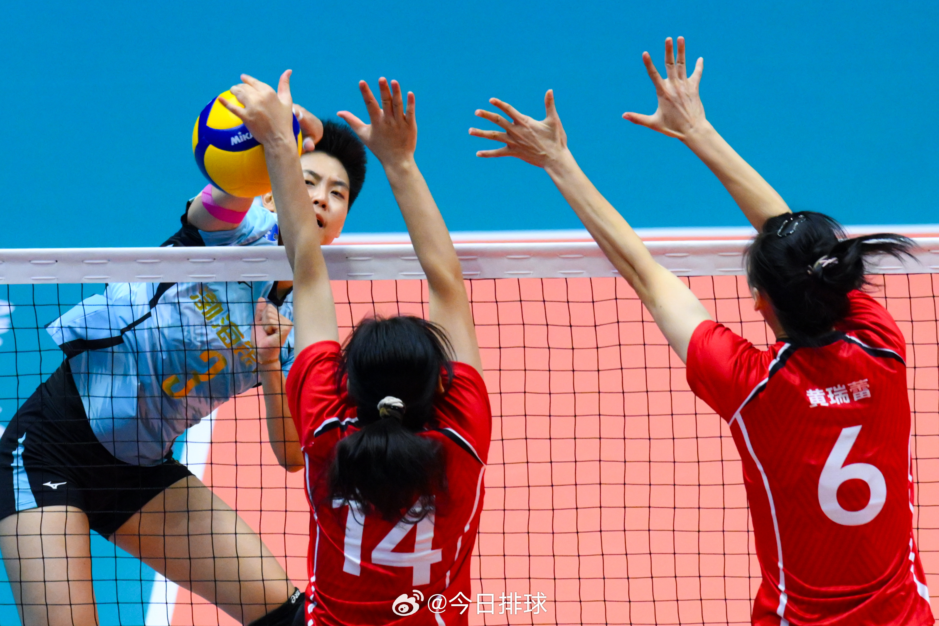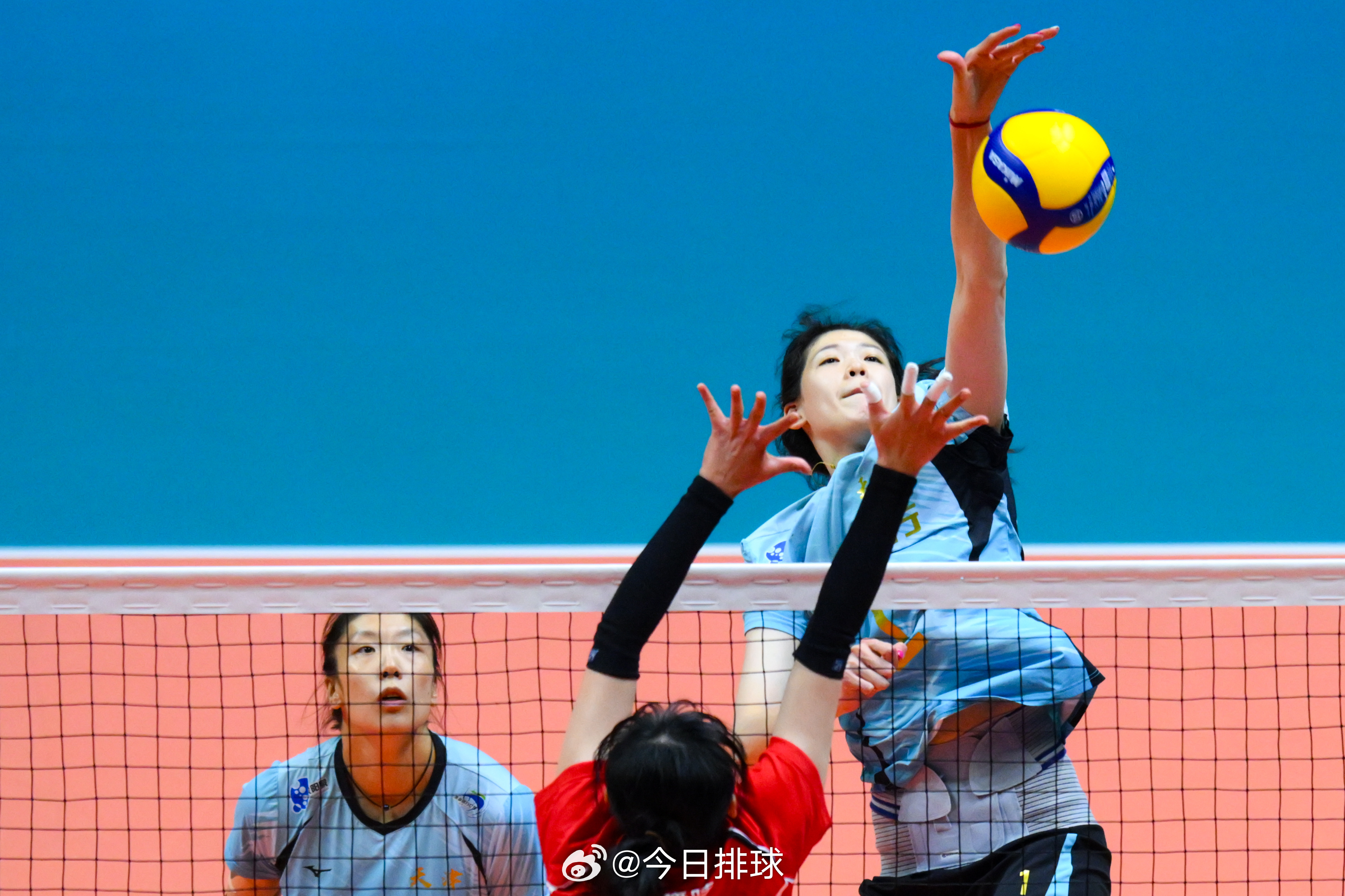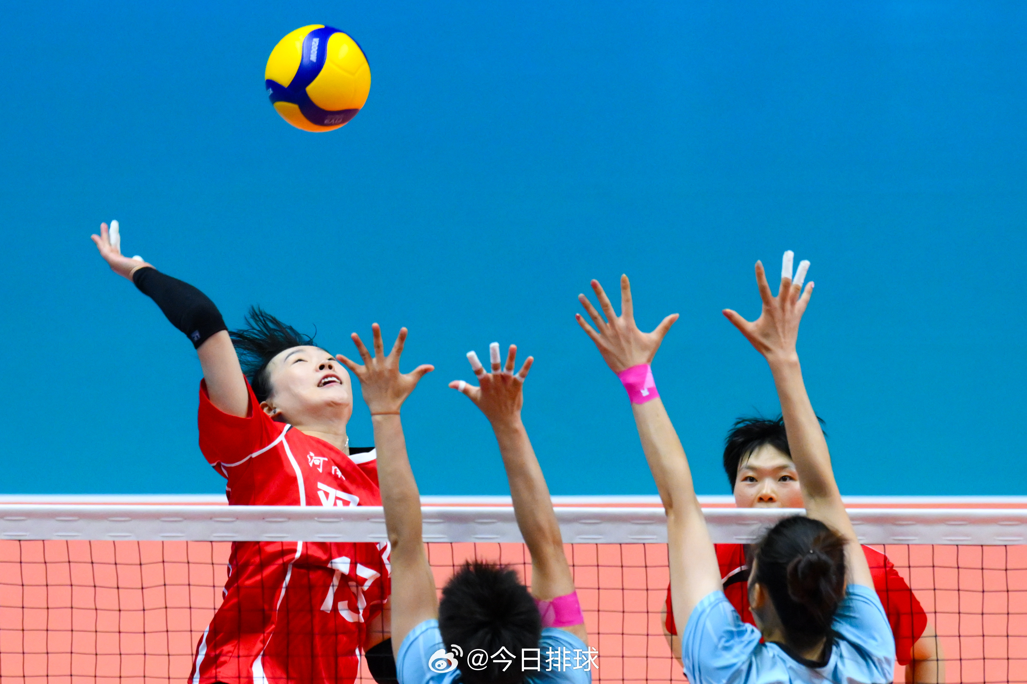 组照:11月19日,在澳门进行的 排球女子成年组5-6名决赛中,天津队3比2战胜河南队,获得第5名,河南队获得第6名(新华社记者 陈斌 摄/新华社发 张金加摄)。
