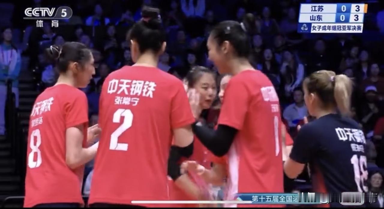 正在直播金牌战🥇江苏女排VS山东女排!江苏女排是连续3届进决赛,山东女排历史首次进决赛,众多国手之间的较量,一场没有硝烟的战争已经打响!这场决赛是两支球队,好多老将的谢幕之战啊,目前清楚知道的是张常宁刁琳宇职业生涯最后一舞!决赛首发阵容上跟之前相比没有太大变化,江苏女排吴梦洁张常宁龚翔宇三叉戟,山东女排杨涵玉郭慧珍双塔副攻均首发亮相!目前第一局江苏6-4领先山东女排