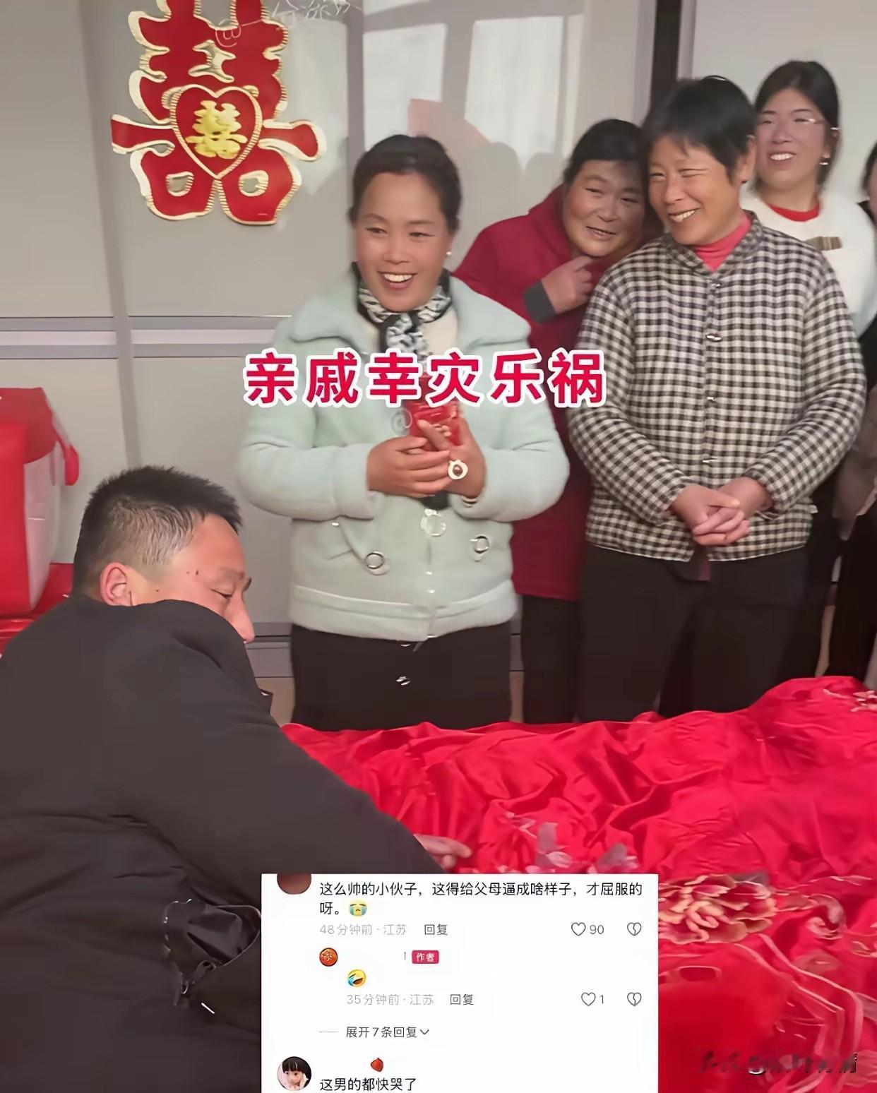 这对新人跨入了婚姻的殿堂, 老公却不开心了! 看到他媳妇的笑容大家估计就笑不出来了,本来还要说一下这男子不地道, 看到他的媳妇理解大哥不开心原因了, 话说这媳妇必须要娶吗? 晚上能吓得了嘴吗? 看得出来大哥是被逼迫的, 一副生无可恋的样子, 婚姻不是儿戏, 不愿意就要勇敢的说出来, 不要憋着, 结婚后在离婚可是很不负责任的, 他的亲戚朋友笑的也太开心了, 不知道是为他高兴还是嘲笑, 毕竟这新娘子确实样貌惊人! 大家对于这对新人怎么看? 婚姻与家庭 晒出你梦中的婚礼 相亲中的女生到底该不该主动?