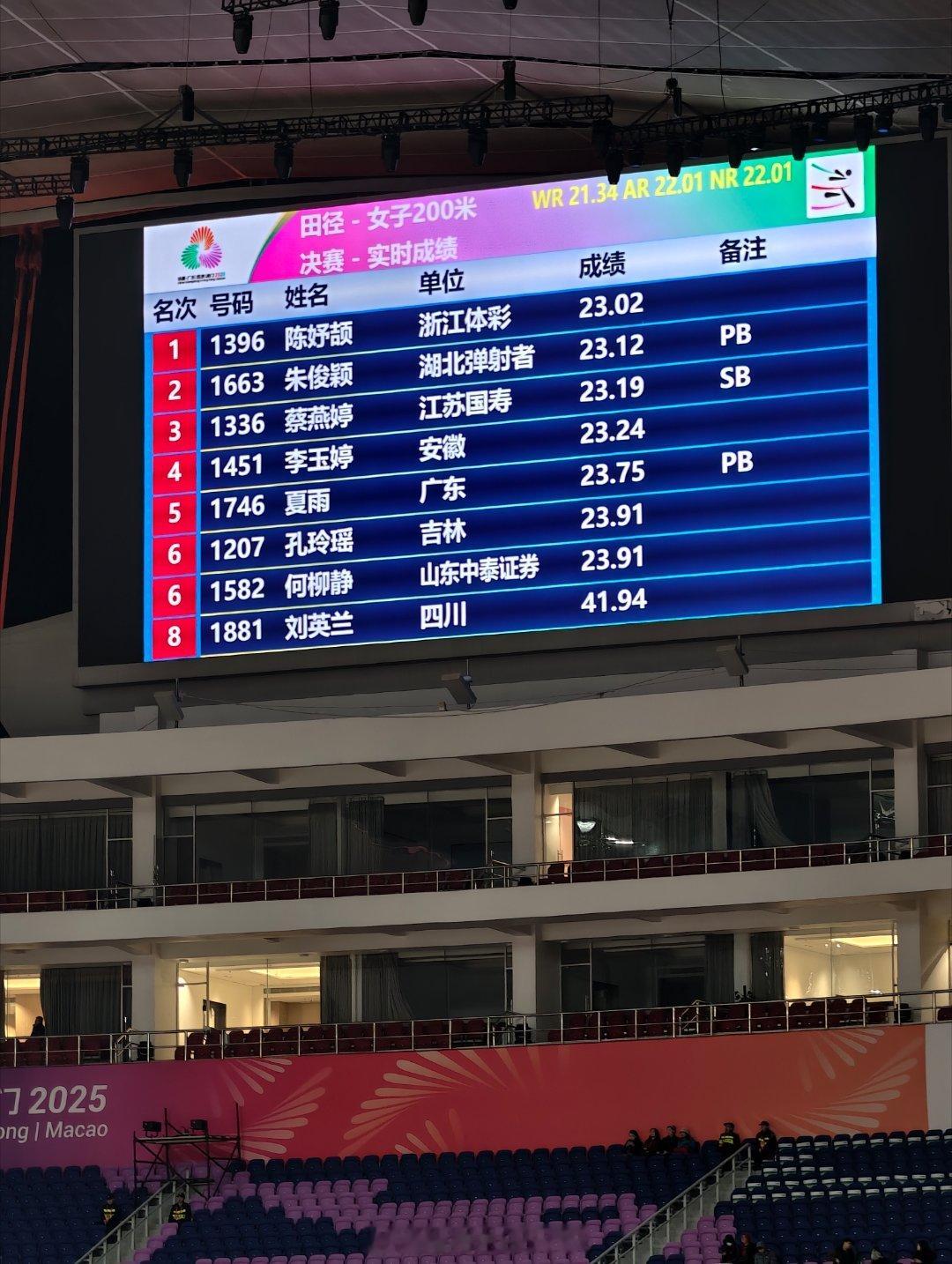 女子200米决赛,出现意外,陈妤颉实现双冠,朱俊颖获得第二名,蔡燕婷获得第三。