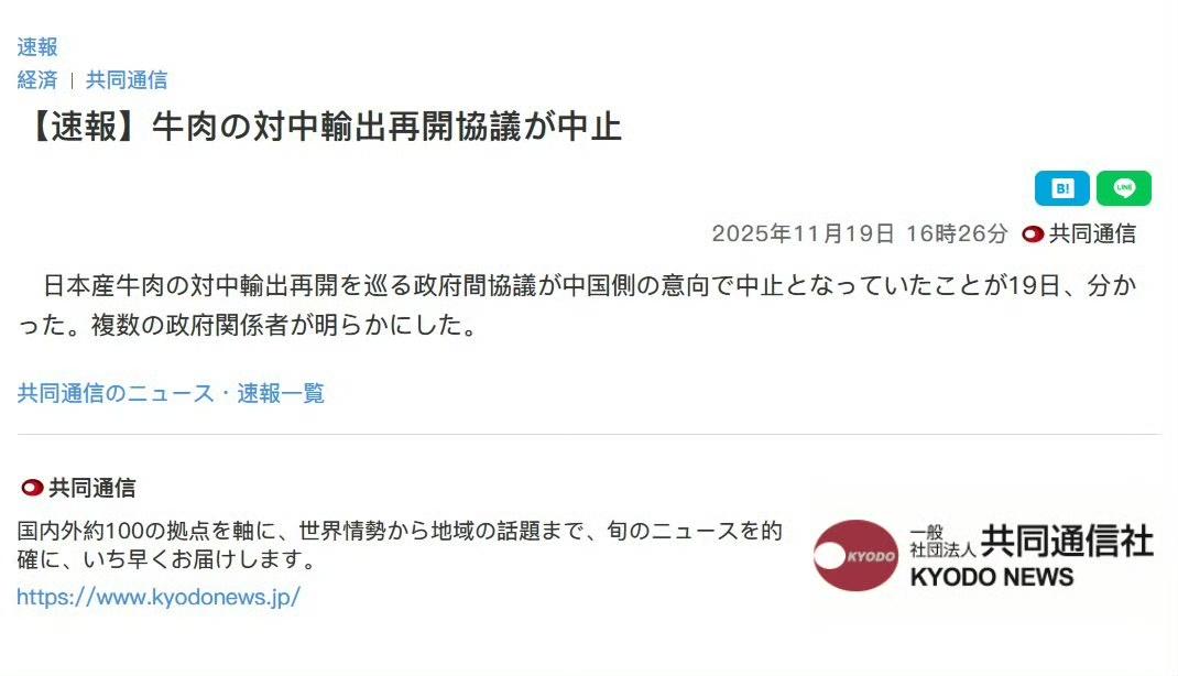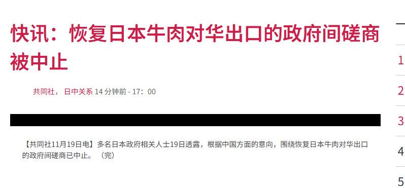 继水产品之后的又一项来了,中方通知日本:牛肉对华出口磋商停止。