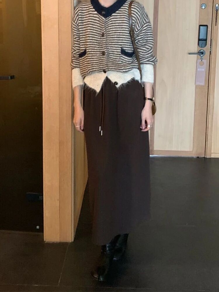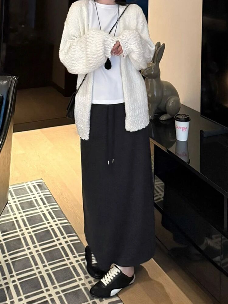 冬季最火的穿搭公式,莫过于针织上衣 + 半裙。好穿百搭的针织上衣大家一定都有的,但在冬日还能显瘦拉腿的半身裙可不多见。今天给大家推荐的这件【 A字洋绒半身裙 】,加绒设计,上身比普通的半裙要暖和得多。保暖的同时,还能修饰臀型、拉长双腿比例❗️👇购买链接 🛒 :一条随着步伐摇晃的长裙,既能有效藏肉,又能让整个造型变得灵动。另外,保暖性强,在南方基本可以光腿穿;在北方,可以在里面穿上厚一点的打底裤、长靴。梨形身材的姐妹,一定要尝试这条裙子❗️后侧开叉设计,整体不会过于死板。V字型的剪裁,从视觉效果上拉长了腿部的比例,还带有一丝优雅。显瘦遮胯的同时,不会压个子,小个子都能轻松驾驭!时尚百搭,毛衣、卫衣、羽绒服都能搭~