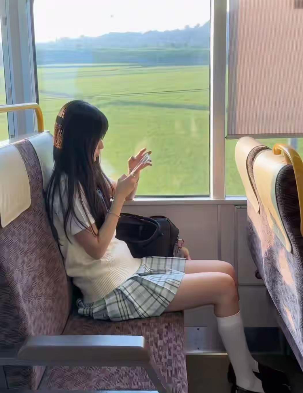 窗外的风景,手中的手机,旅途中的美好时光。