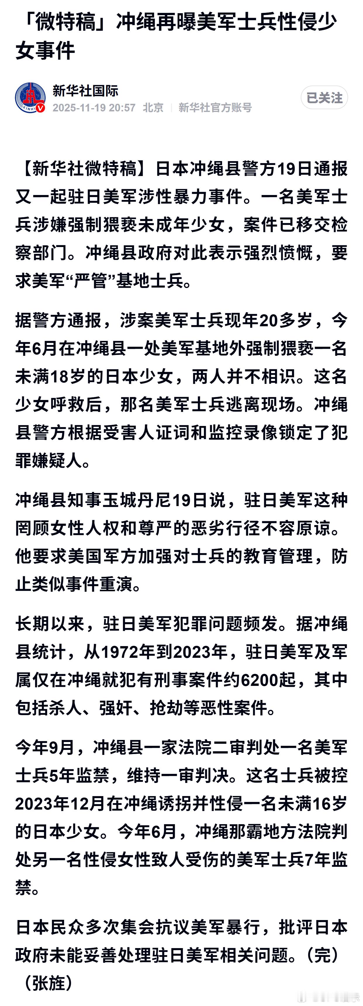 冲绳再曝美军士兵性侵少女事件