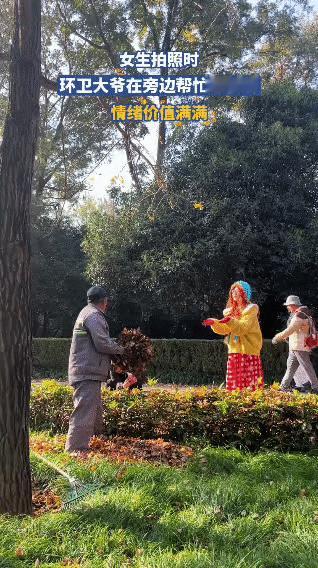 刚刷到一个满是秋意的暖视频: 女生穿着亮眼的黄毛衣和红裙子,在满是落叶的公园里准备拍照,一旁的环卫大爷看在眼里,悄悄捧起一大捧金黄的树叶。 等镜头对准女生时,大爷轻轻把树叶抛向空中,细碎的阳光里,叶子打着旋儿落在她身边,把普通的拍照瞬间变成了满是温柔的小浪漫。 拍完照后,女生笑着跟大爷道谢,大爷也挠挠头笑,说“没事,这样拍出来好看”,风里都是树叶和善意揉在一起的暖。 原来秋天的浪漫不止有落叶,还有陌生人愿意为你制造的那一场“落叶雨”。落叶氛围照片 淡雅秋景自拍