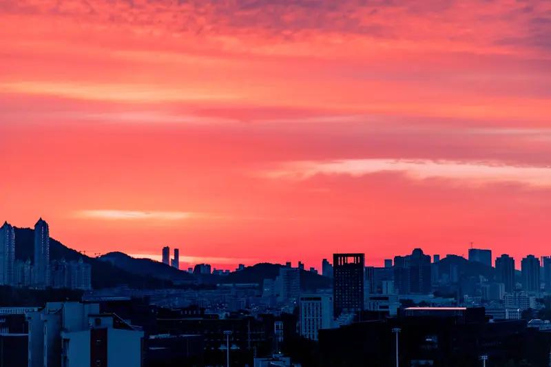 今晨北京这“天空幻境”,简直绝了!凌晨五点刚过,东方天际就泛起浅粉,眨眼间橙红、金橘、淡紫层层晕染,成了一片“胭脂海”,像大自然搞的露天光影秀。 胡同里青砖灰瓦接住浪漫,老槐树漏下金光,连素白菊瓣都染了色。早点摊白烟混着芝麻烧饼焦香,在霞光里变淡金色飘着。穿蓝布衫老人提鸟笼走过,画眉轻啼,老北京烟火气和朝霞缠得超熨帖。 故宫西北角楼特出片,琉璃瓦熔金般发光,和天边呼应。摄影爱好者早早占位,白发大爷都感叹从没见过这么艳的朝霞。CBD 也不赖,中国尊幕墙成光带,鸟巢少了冷硬多了温润。这朝霞,美成壁纸,成油画,开启周一小美好!