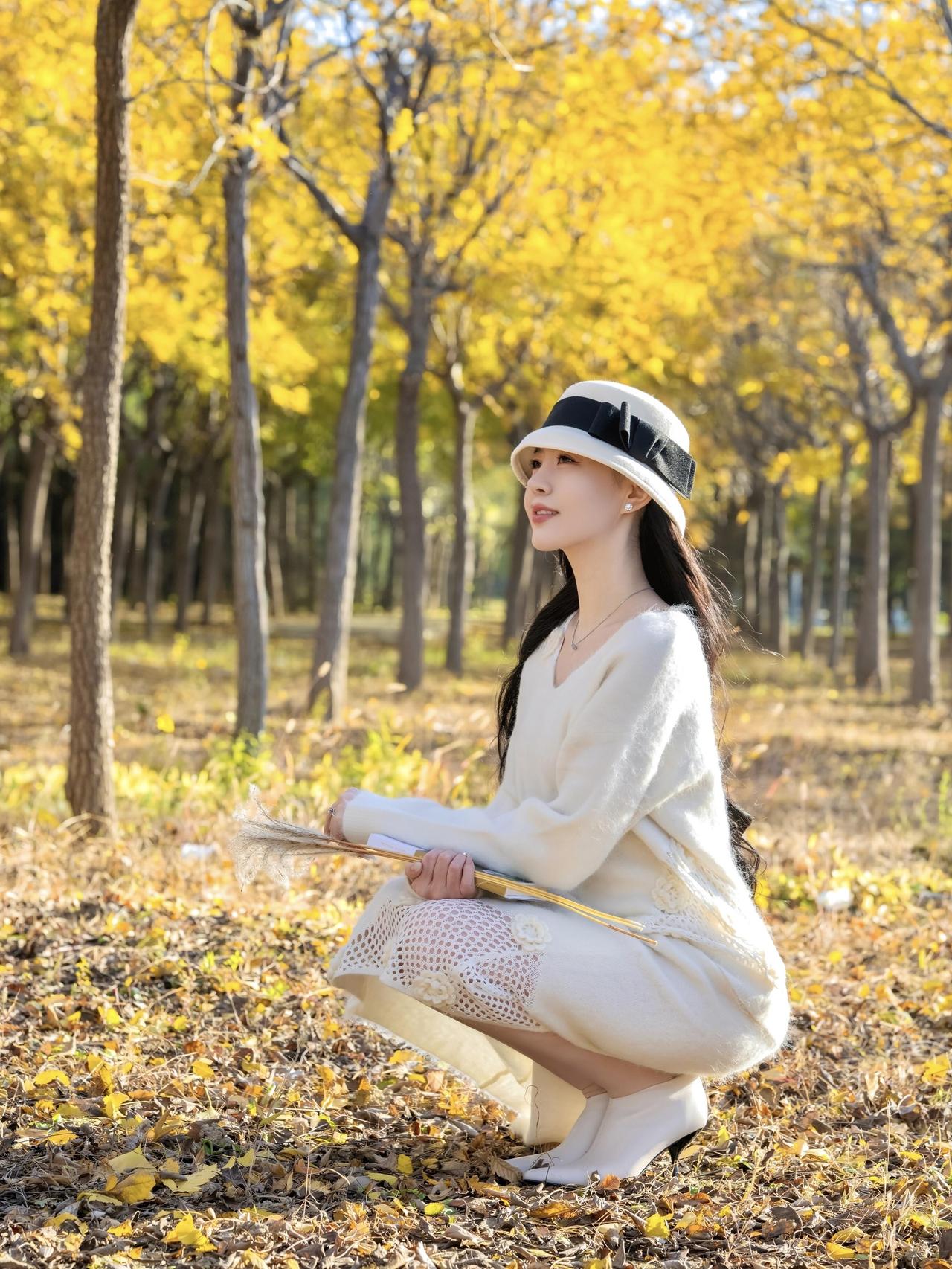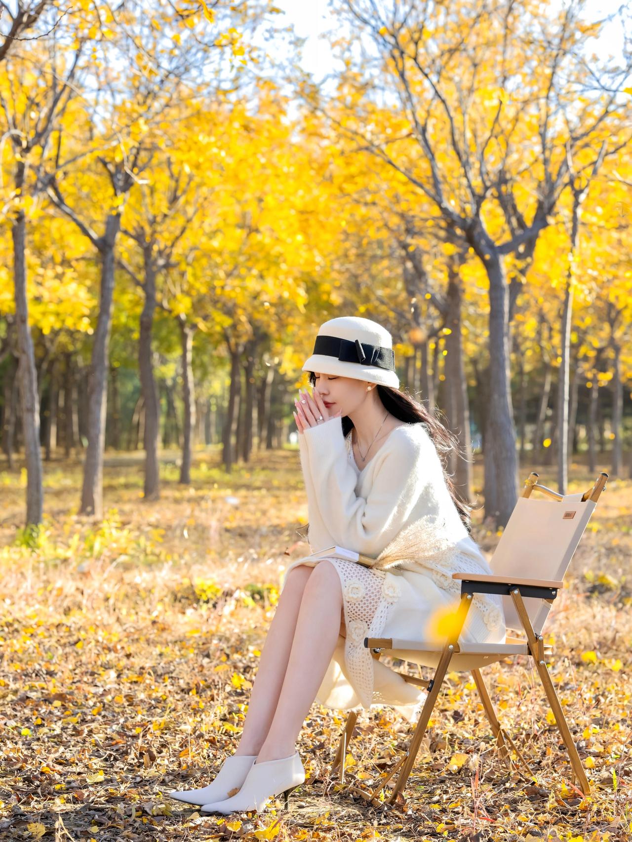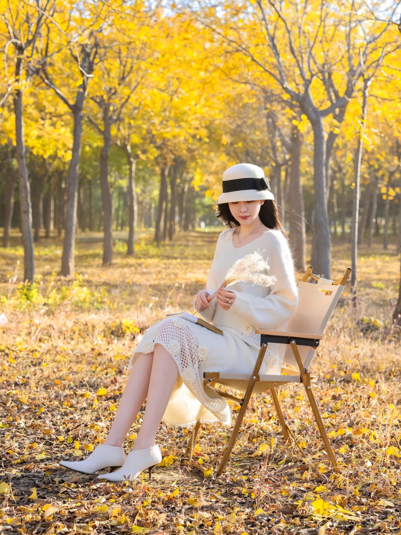 风起时想你,银杏叶簌簌飘落,像时光寄来的金色信笺。 林间光影斑驳,你着素衣、戴雅帽,或静坐椅中,手托腮畔,眸光流转着秋日的温柔; 或蹲身拾叶,指尖轻捻,将落叶的呢喃纳入掌心; 亦或持芦苇伫立,衣袂随风轻扬,似与秋风低语。 每帧画面,皆是爱的呢喃。在金黄的隧道里,你与秋光共舞,温柔了岁月,缱绻了时光。 风过林梢,叶落成诗,此刻想你,如秋阳暖彻,如银杏静美,恰是人间最清丽的相遇。 = = = = = = = = = = = = = = = = = = = = = = 【📸 摄影思路 & 参数分享 | 把秋日心动定格】 ①光影设计:选日落前1小时的逆光时段,用反光板补脸上阴影,光比控制在1:2,发丝镀金边超有氛围感! ②参数设置: -光圈:f/2.8 虚化杂乱背景,突出人物情绪; -快门:1/200s 凝固落叶动态; -USO:200 保留胶片质感; - 白平衡:5500K 偏暖调,银杏更通透。 ③构图巧思: - 低机位仰拍,让芦苇丛成天然画框; - 用「三分法」把人物放右交叉点,左留白给飘落的叶。 ④后期调色: - 降高光+提阴影,让暗部有细节却不灰; - HSL 单独拉橙色饱和度,银杏瞬间透亮! ⑤Tips:风大时连拍设为「高速+追焦」,抓拍自然瞬间成功率翻倍。