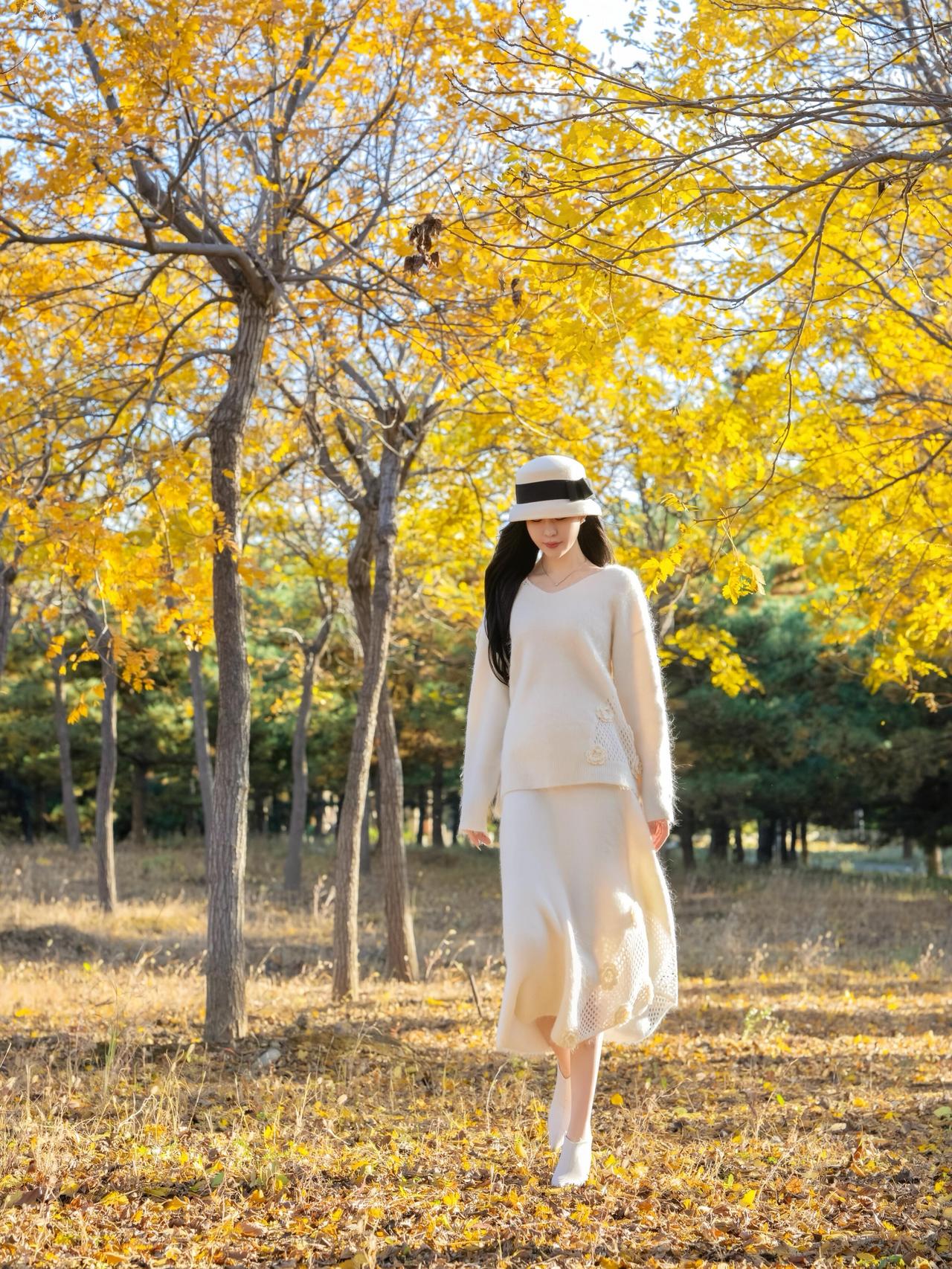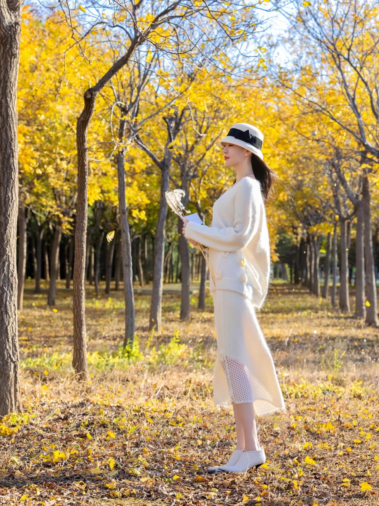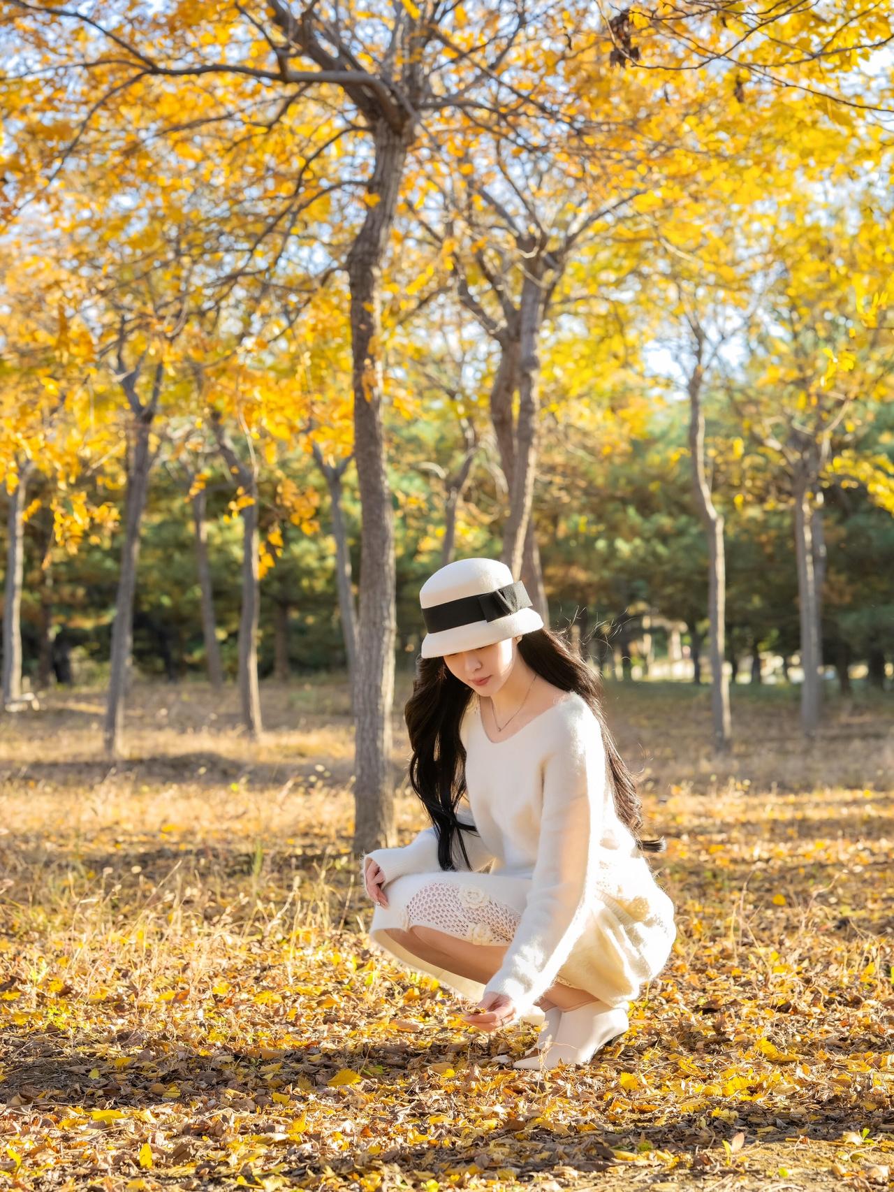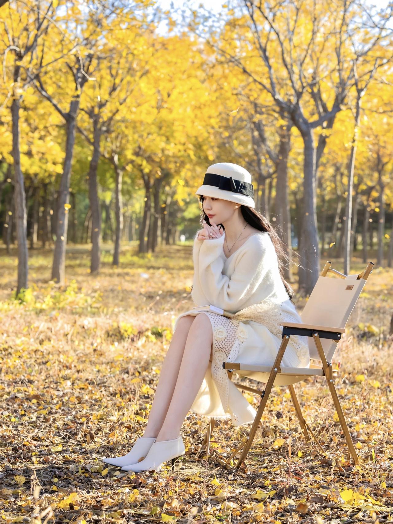 风起时想你,银杏叶簌簌飘落,像时光寄来的金色信笺。 林间光影斑驳,你着素衣、戴雅帽,或静坐椅中,手托腮畔,眸光流转着秋日的温柔; 或蹲身拾叶,指尖轻捻,将落叶的呢喃纳入掌心; 亦或持芦苇伫立,衣袂随风轻扬,似与秋风低语。 每帧画面,皆是爱的呢喃。在金黄的隧道里,你与秋光共舞,温柔了岁月,缱绻了时光。 风过林梢,叶落成诗,此刻想你,如秋阳暖彻,如银杏静美,恰是人间最清丽的相遇。 = = = = = = = = = = = = = = = = = = = = = = 【📸 摄影思路 & 参数分享 | 把秋日心动定格】 ①光影设计:选日落前1小时的逆光时段,用反光板补脸上阴影,光比控制在1:2,发丝镀金边超有氛围感! ②参数设置: -光圈:f/2.8 虚化杂乱背景,突出人物情绪; -快门:1/200s 凝固落叶动态; -USO:200 保留胶片质感; - 白平衡:5500K 偏暖调,银杏更通透。 ③构图巧思: - 低机位仰拍,让芦苇丛成天然画框; - 用「三分法」把人物放右交叉点,左留白给飘落的叶。 ④后期调色: - 降高光+提阴影,让暗部有细节却不灰; - HSL 单独拉橙色饱和度,银杏瞬间透亮! ⑤Tips:风大时连拍设为「高速+追焦」,抓拍自然瞬间成功率翻倍。