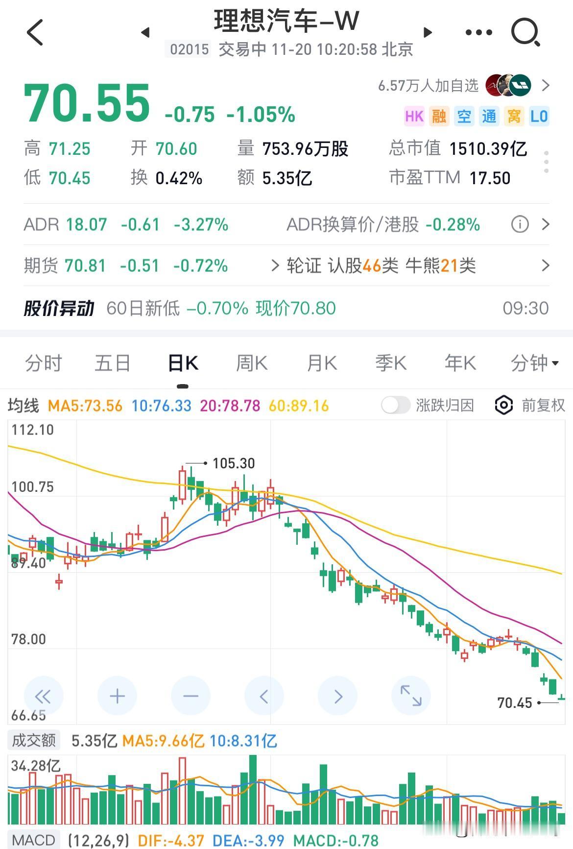 小米市值重回万亿以内(图一)。 再看理想(图二),两家走势几乎如出一辙…… 说实话,我感觉小米和理想汽车已经是新势力中非常优秀的代表了,但最近一段时间的市场表现让人有点看不懂。 可能就是像巴菲特说的那样,“带轮子的都不是好生意”。 美团王兴以前经常说“无限战争”、“没有终局”,感觉也可以完美的套用到新能源车企之间的竞争格局和关系上。 那就是:竞争永远没有结束、永远都要战斗……