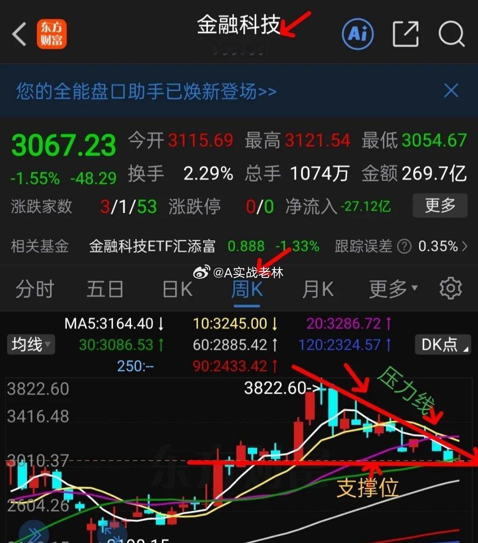 11.20金融科技今天能否变盘,请看它以下分析? 金融科技是比较活跃板块之一,近期由于证券不争气,导致其持续下跌,日线周线走势如下图所示,自8月份高点到目前已经下跌了20%,回调幅度还是比较大的,现在日线与周线走势,都到了阶段底部支撑区域,日线横盘6天,企稳迹象明显。 今天证券板块遇重组利好消息刺激,证券有可能强势反弹,那么金融科技板块与证券板块关联很大,也可能反弹,甚至比证券反弹力度更大,突破20日线压力扭转下跌趋势,拭目以待! 点赞转发关注投资理财不迷路。