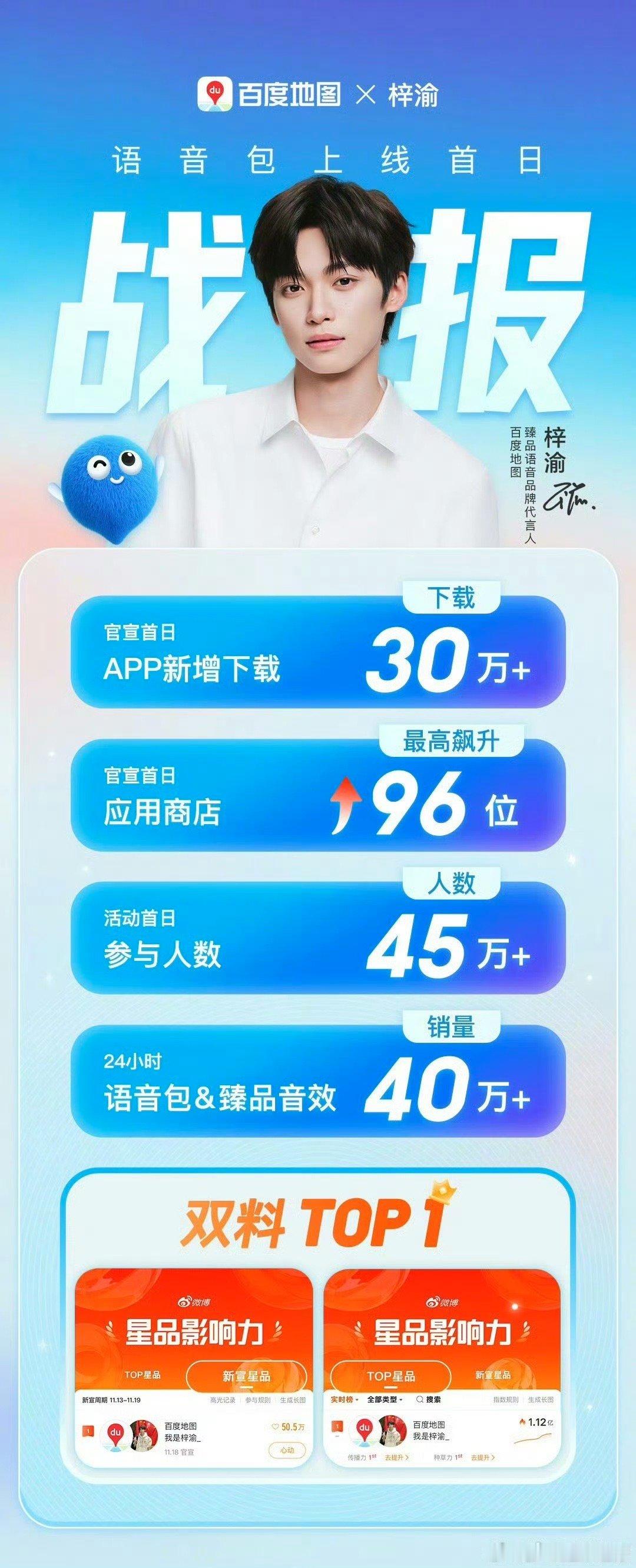 梓渝百度地图首日战报,梓渝的活粉量绝了!