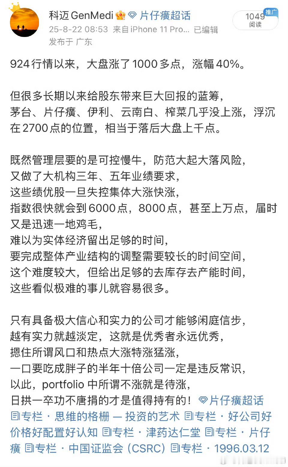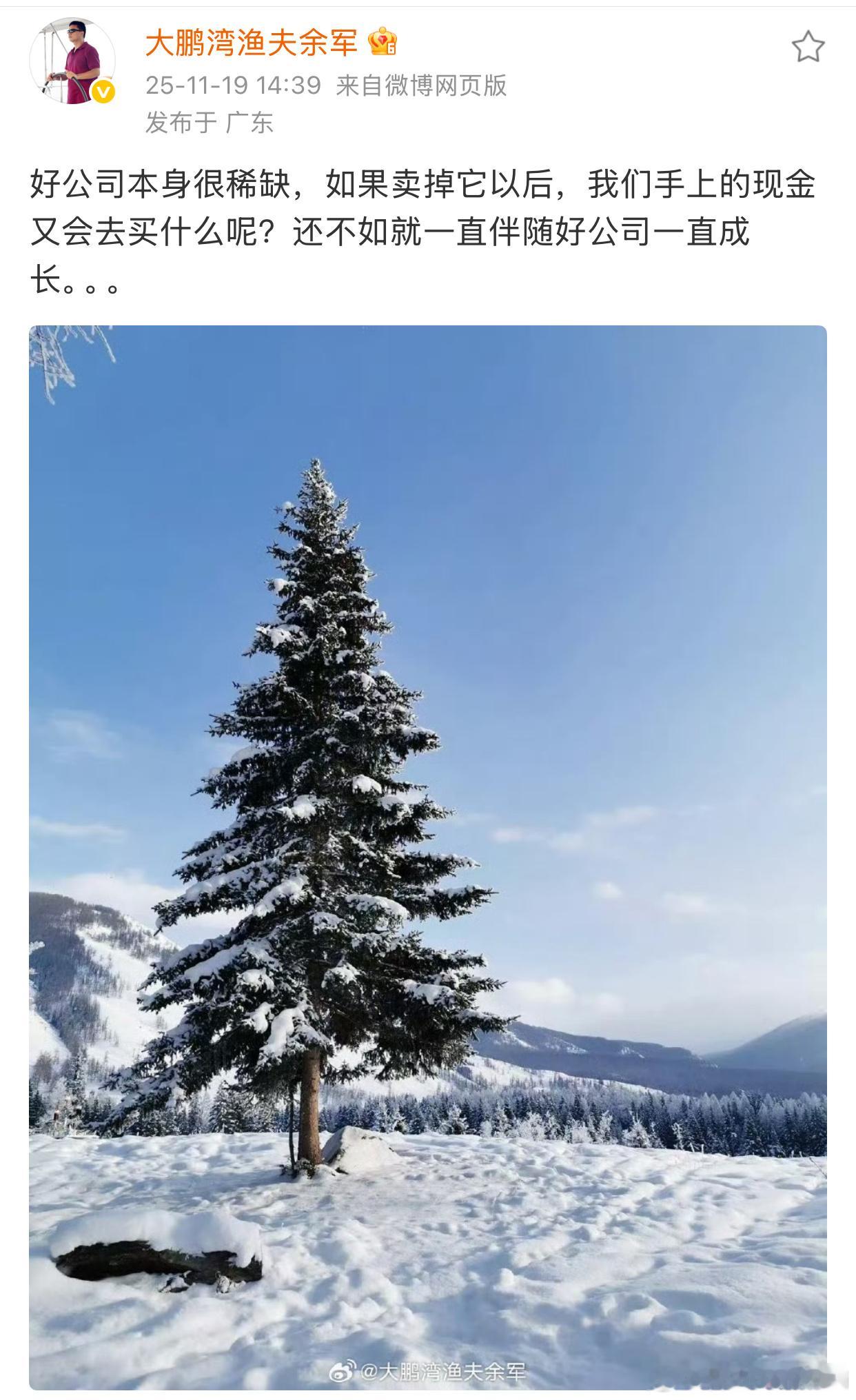 好公司本身很稀缺,如果卖掉它,我们手上的现金又会去买什么呢?还不如就一直伴随好公司一直成长。。。